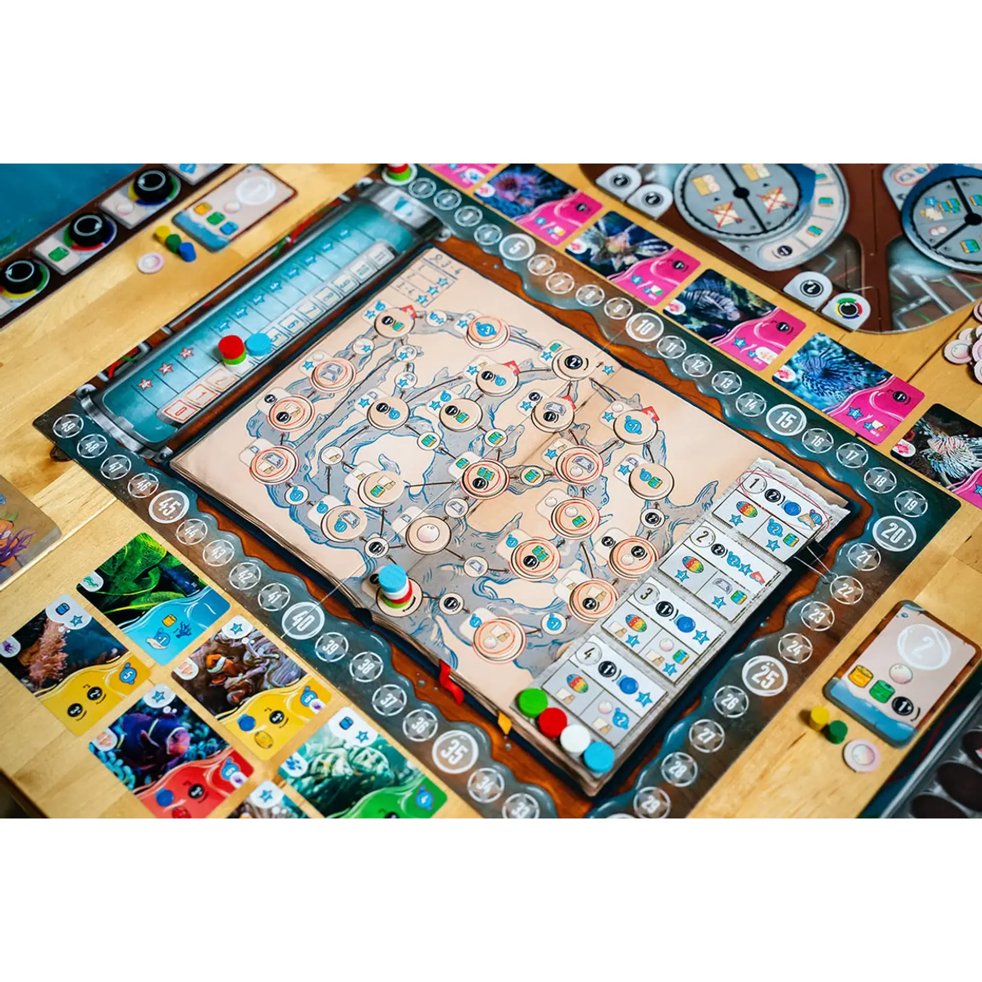 During the game, you buy new fish, feed them, maintain the conditions in your aquarium, and advance on encyclopedic tracks that represent your aquaristic knowledge. The winner is the one who scores the most points at the end by combining a well-maintained aquarium with achieved objectives.