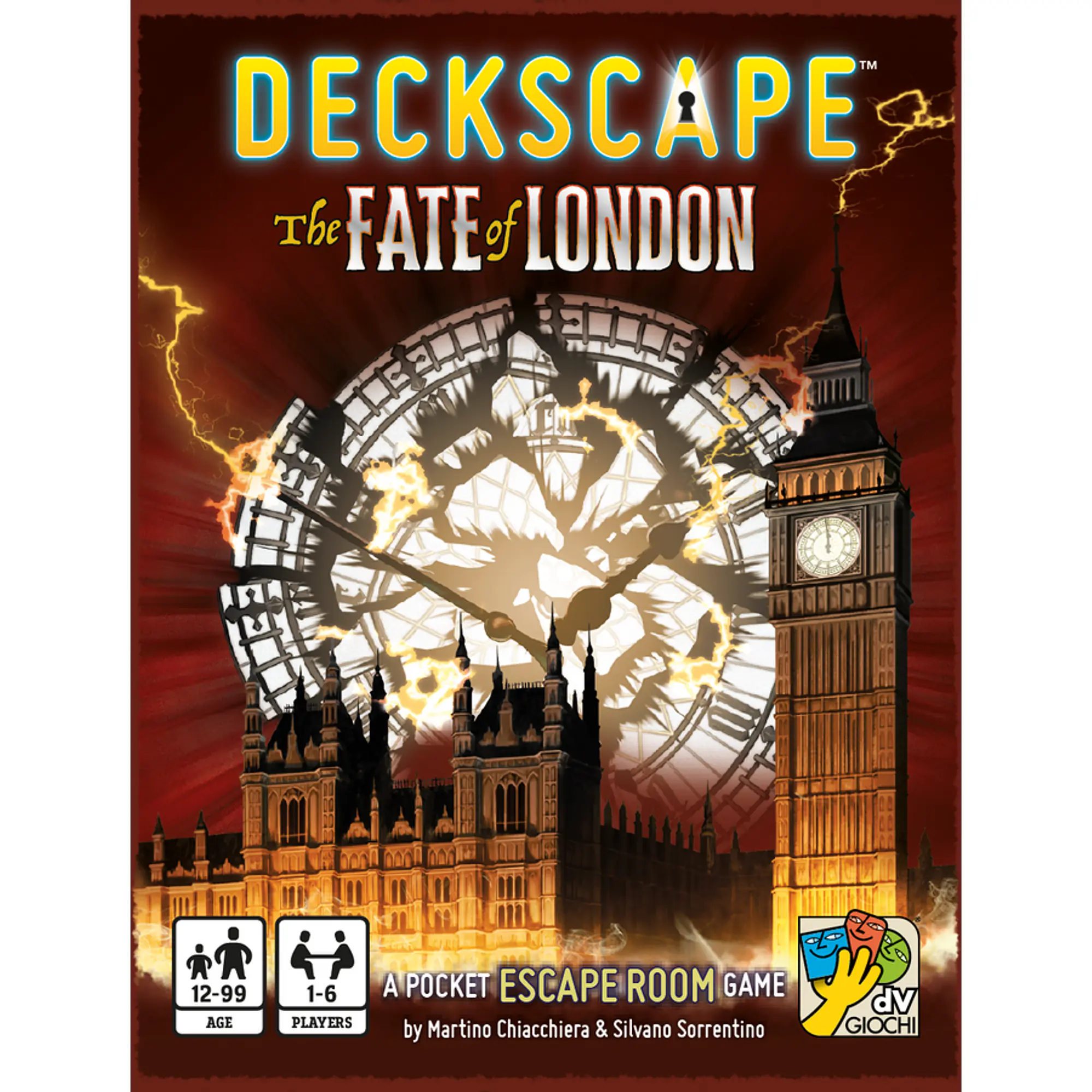 Deckscape: The Fate of London is the second title in a series of cooperative games inspired by real escape rooms in which a group of people is "trapped" inside a room full of puzzles and odd items. The goal of the game is to solve puzzles, understand the plot of the story, and make intelligent use of the items provided in order to exit from the room as quickly as possible.