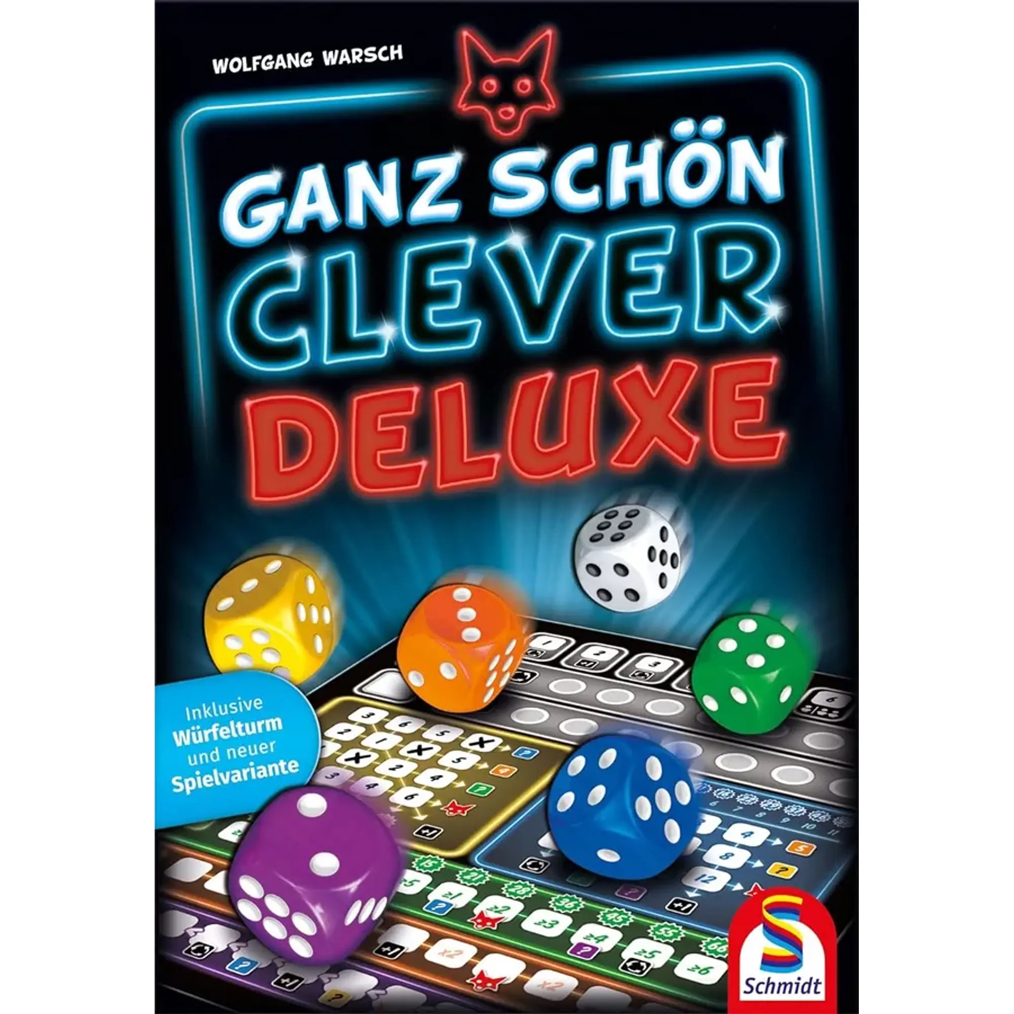Ganz schön clever: Deluxe is an upgraded version of the popular game Ganz schön clever. It’s a roll-and-write game – the focus is on smartly combining numbers and colors. The game offers a sense of challenge and satisfaction through creating chain reactions that score points. The Deluxe edition includes the original scoring sheet and an additional sheet that combines mechanisms from all four previous games in the series, as well as practical extras like laminated sheets and a dice tower.