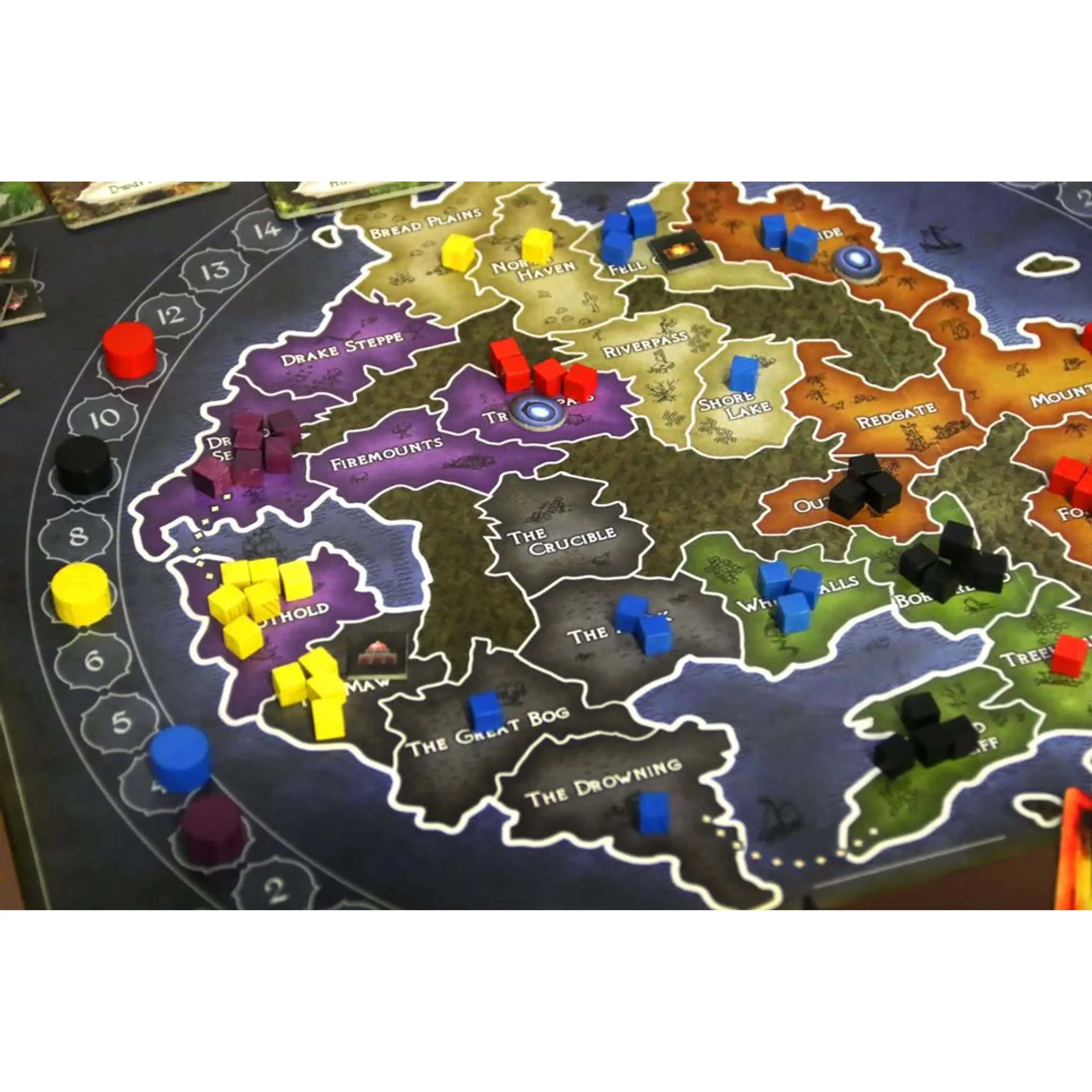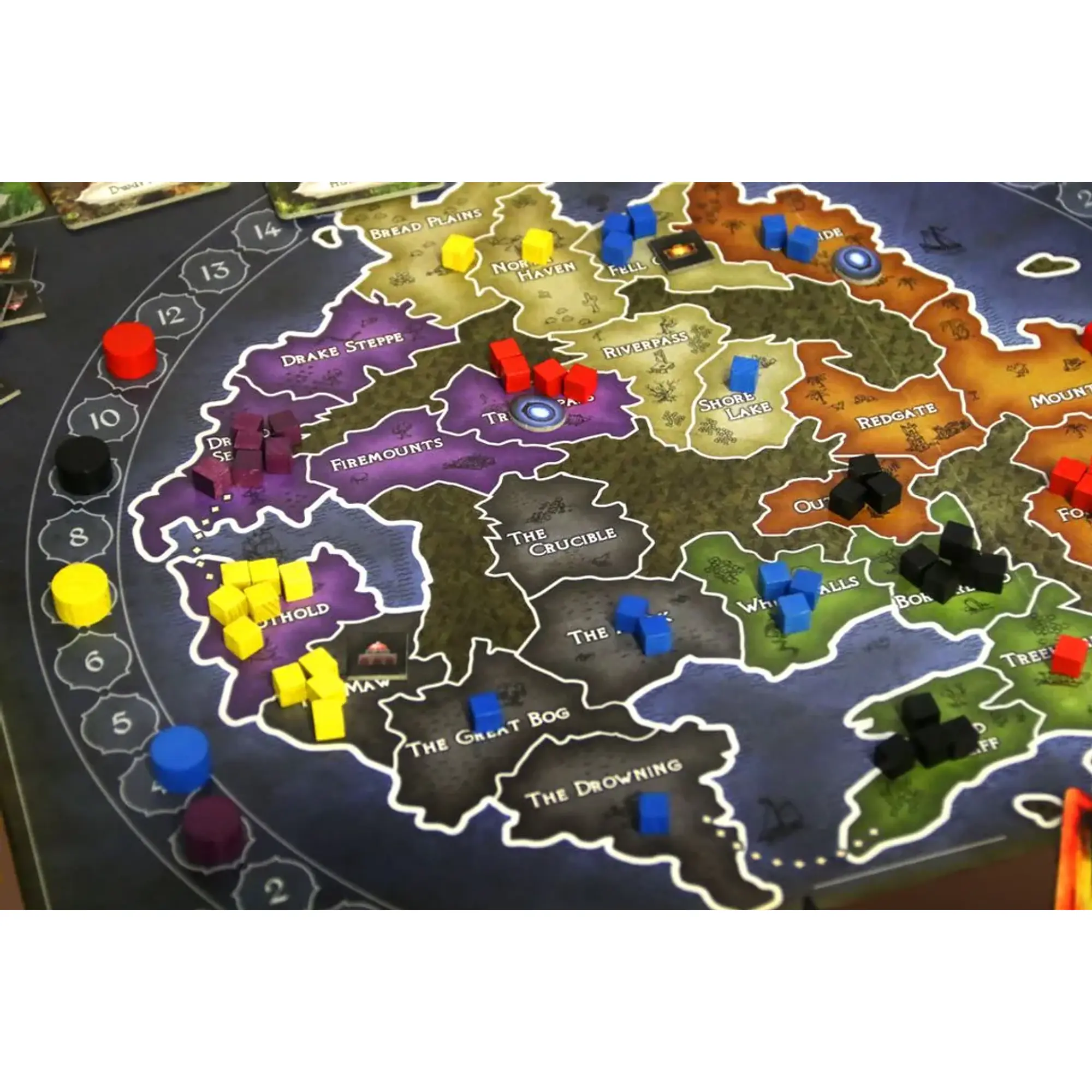 It is each player's aim to control and make efficient use of the different areas and their resources (inhabitants, gold, energy) in both realms. The player who most successfully implements their ambitions will be the winner of the game.
