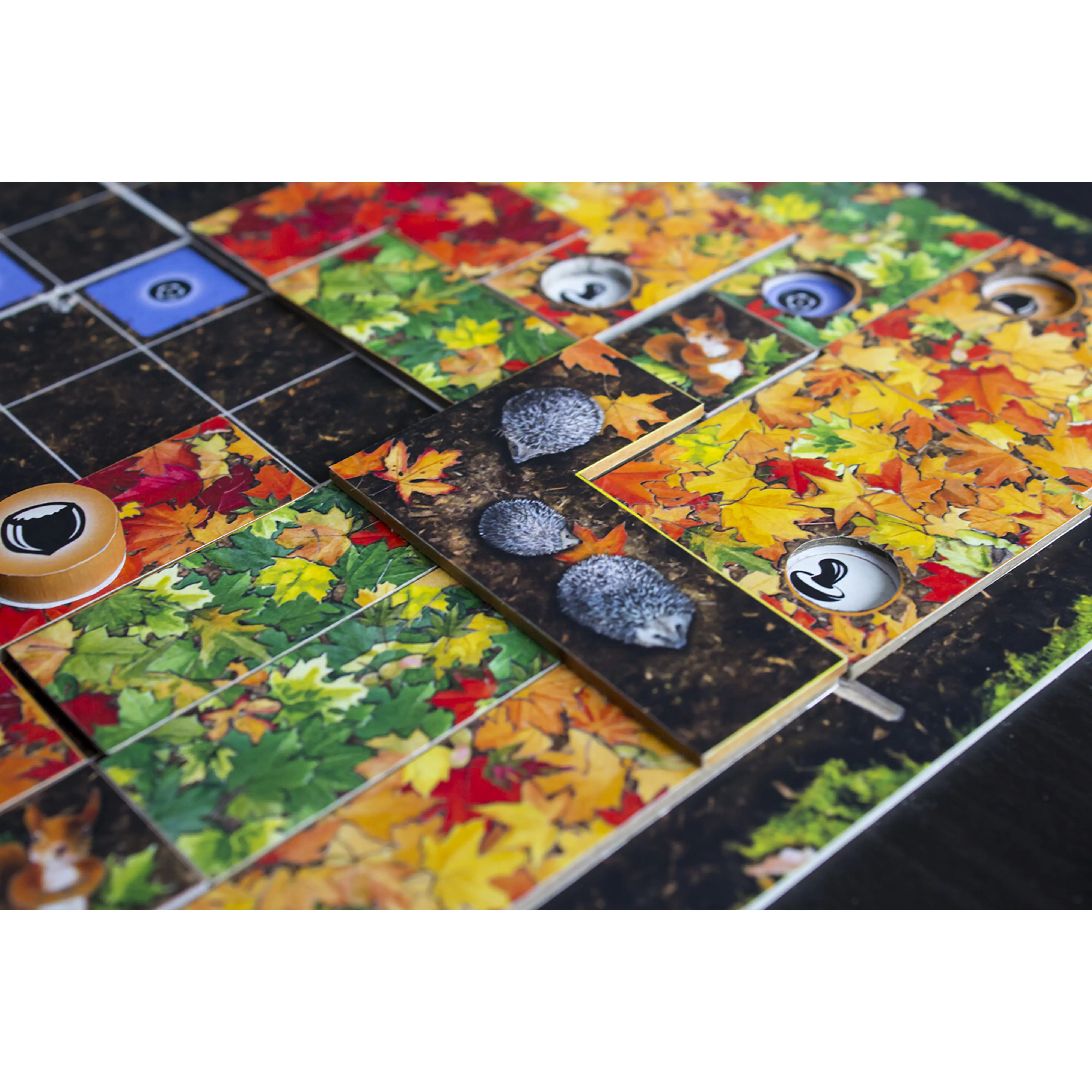 Indian Summer is the second part of Uwe Rosenberg's puzzle trilogy following 2016's Cottage Garden, and this game is firmly geared towards experienced players. At the heart of the game are puzzle tiles with holes that are placed on individual forest boards to cover up treasures. When players get their hands on these, they gain more options and an edge over their opponents. All that counts in the end is to be the first to cover your forest floor completely with leaves.