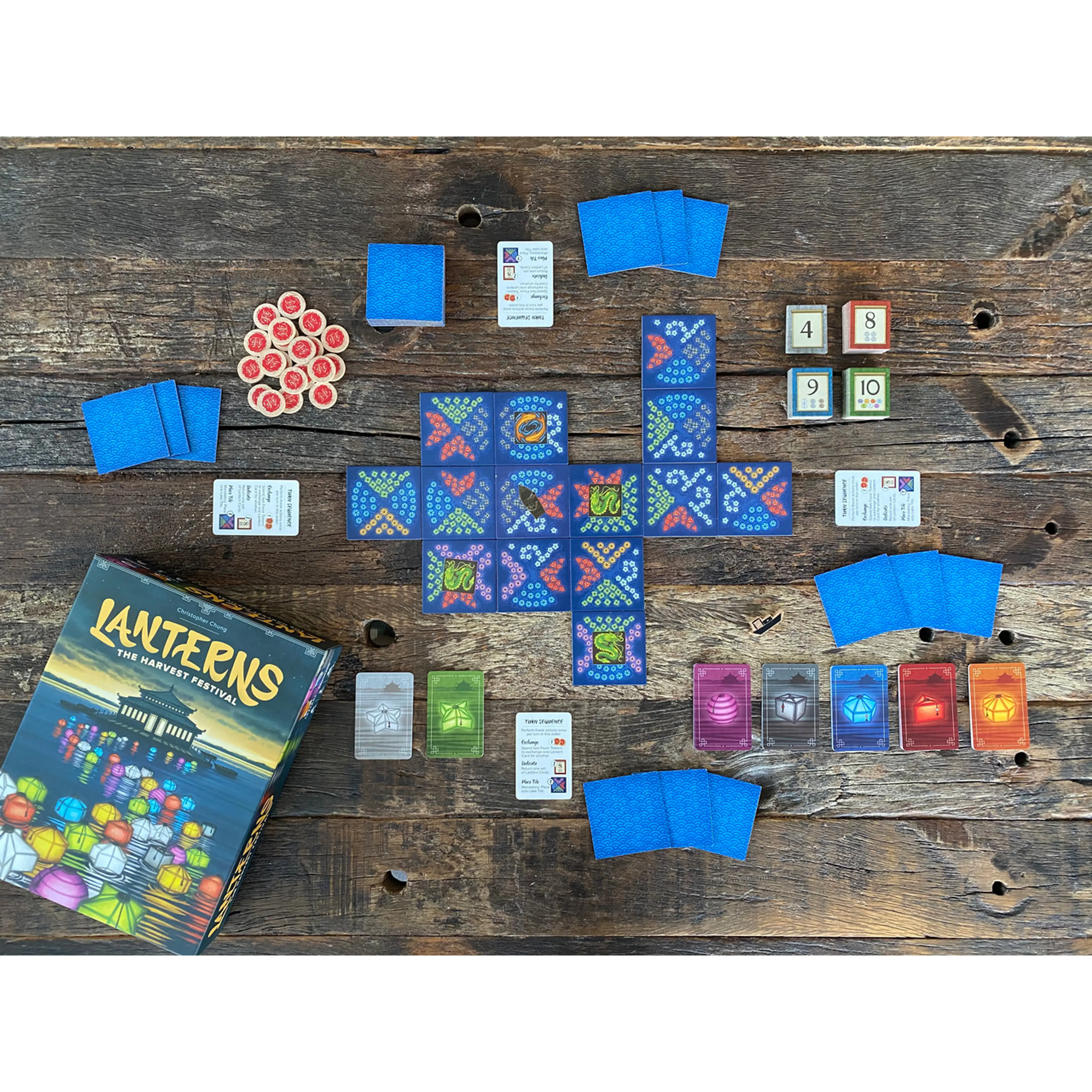 Lanterns: The Harvest Festival is a tile placement game set in imperial China. Players act as artisans decorating the palace lake with floating lanterns. The artisan who earns the most honor before the festival starts wins the game.