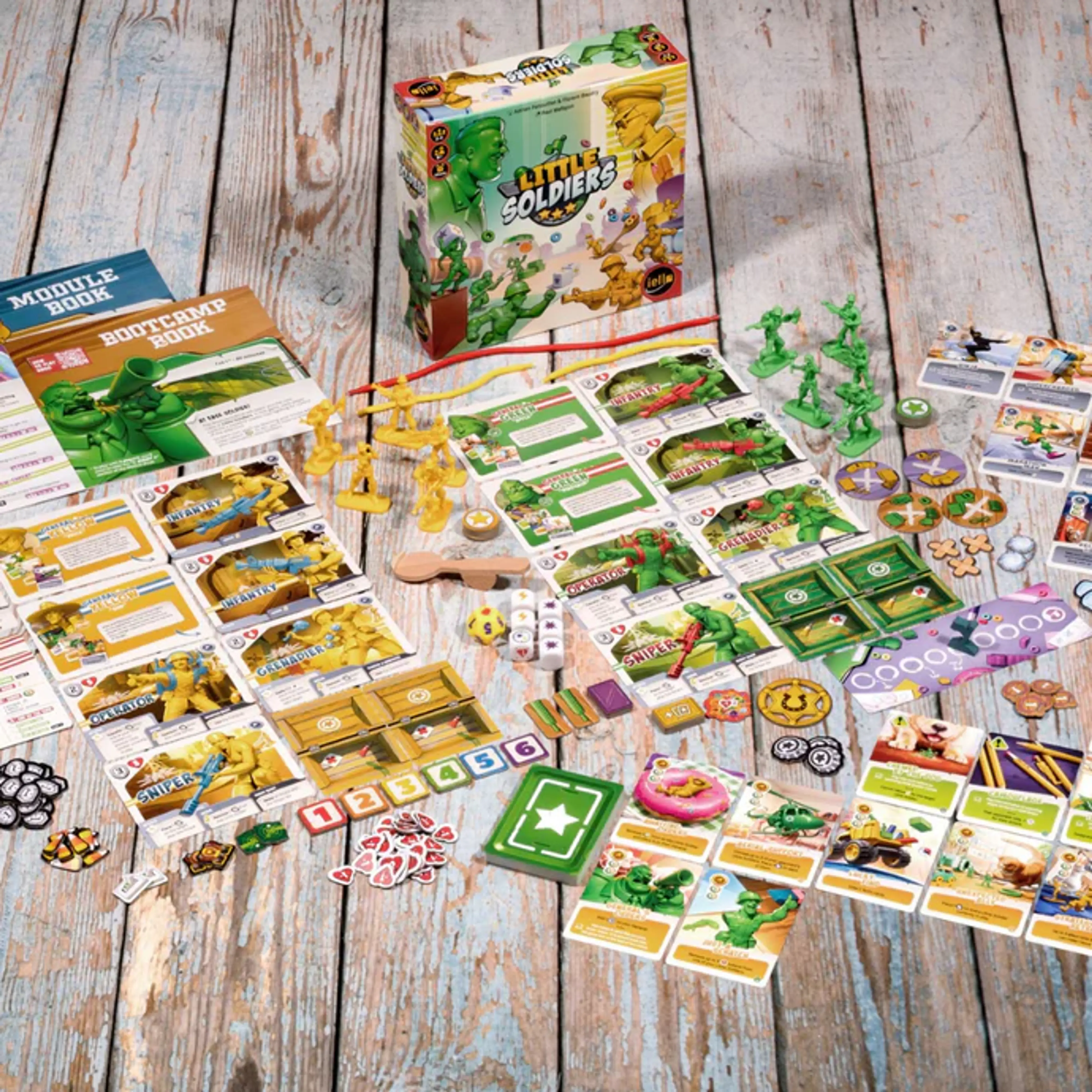 Little Soldiers is a fun and imaginative board game that turns everyday table items into a battlefield for tiny plastic soldiers. The game was designed by Florent Baudry and Adrien Fenouillet.