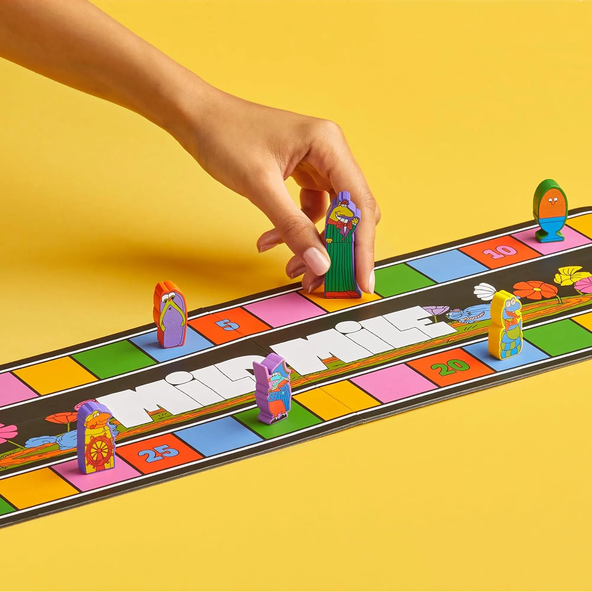 The game is built on a very simple core of roll and move, enhanced by open character drafting and an extremely diverse set of special powers. At the beginning, players draft a team of four racers from a large pool, followed by four consecutive races. Before each race, players secretly choose which of their characters to use. During the race, players roll a die, but movement is constantly altered by character abilities, player interactions, and the effects of the racetrack, which features both a “mild” and a “wild” side. Only the first two racers in each race earn points, and the overall winner is the player with the most points after four races.
