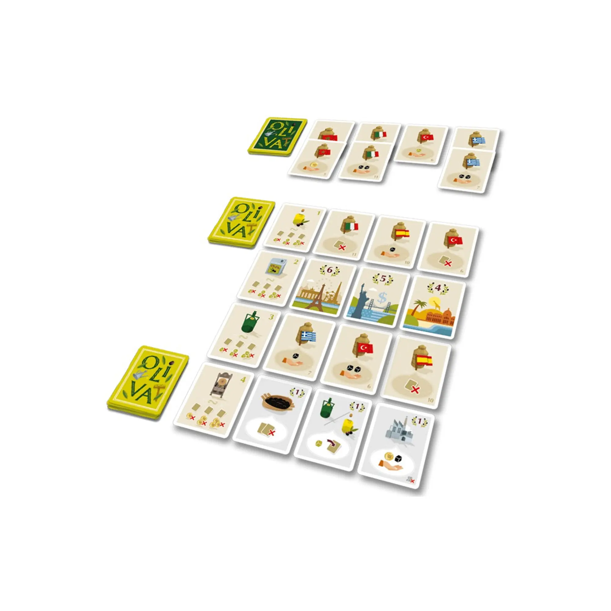 It’s a light strategic game with elements of set collection and resource management. Players choose cards representing different olive varieties and combine them to score points. The key is optimizing moves and completing sets at the right time, as the game also includes a competitive element – who will be the first to achieve certain goals.