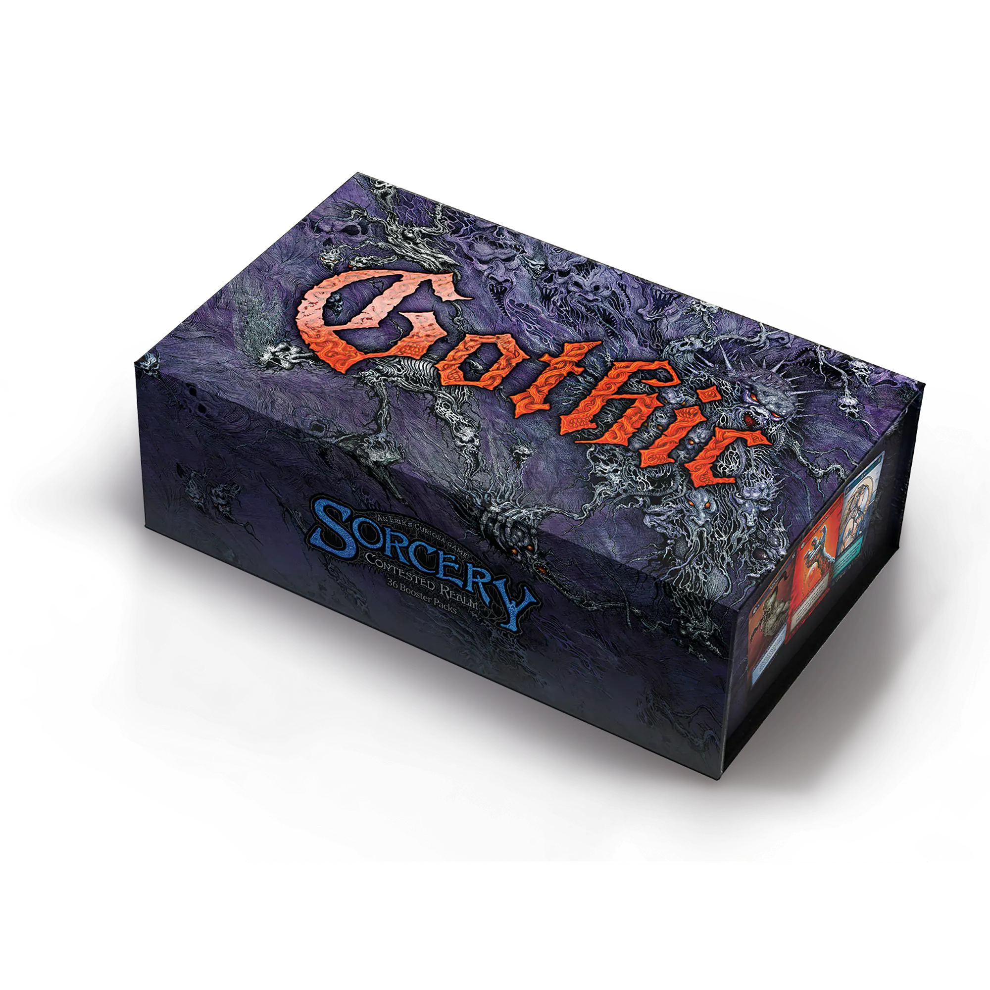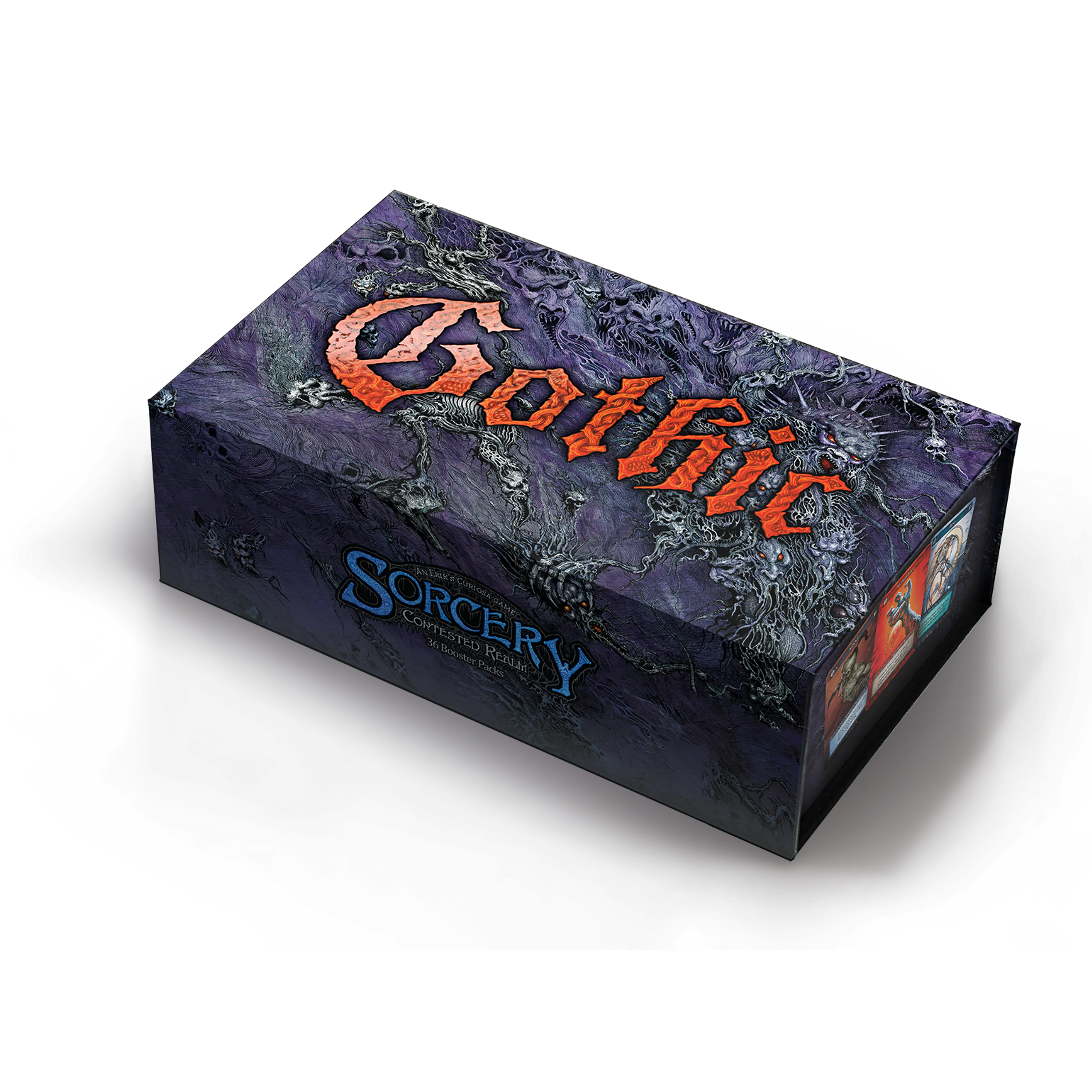 This is a collector’s box that contains 36 booster packs from the Gothic expansion for the game Sorcery: Contested Realm. This expansion is the largest so far and brings 440 new cards exploring dark, gothic themes such as Undead, Demons, and Monsters, while introducing a new Evil keyword mechanic for synergy among these creatures.