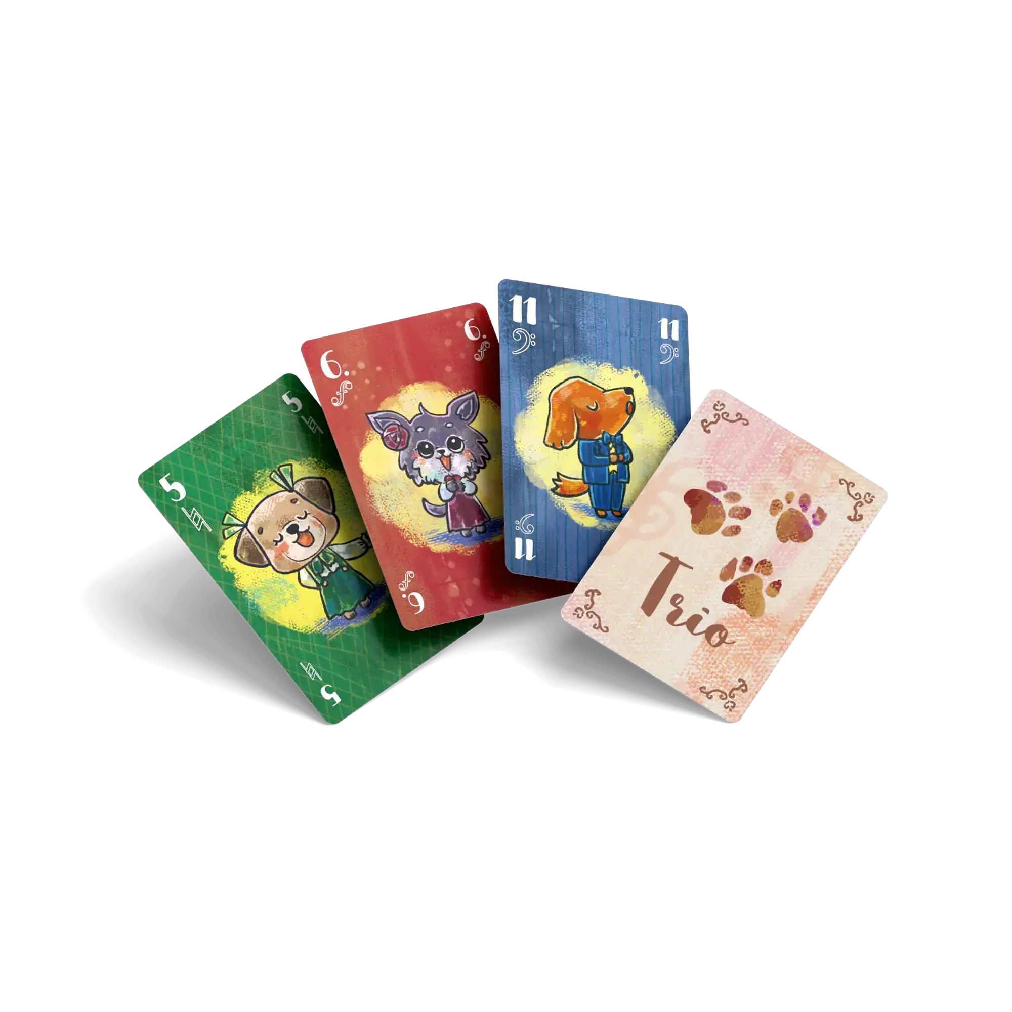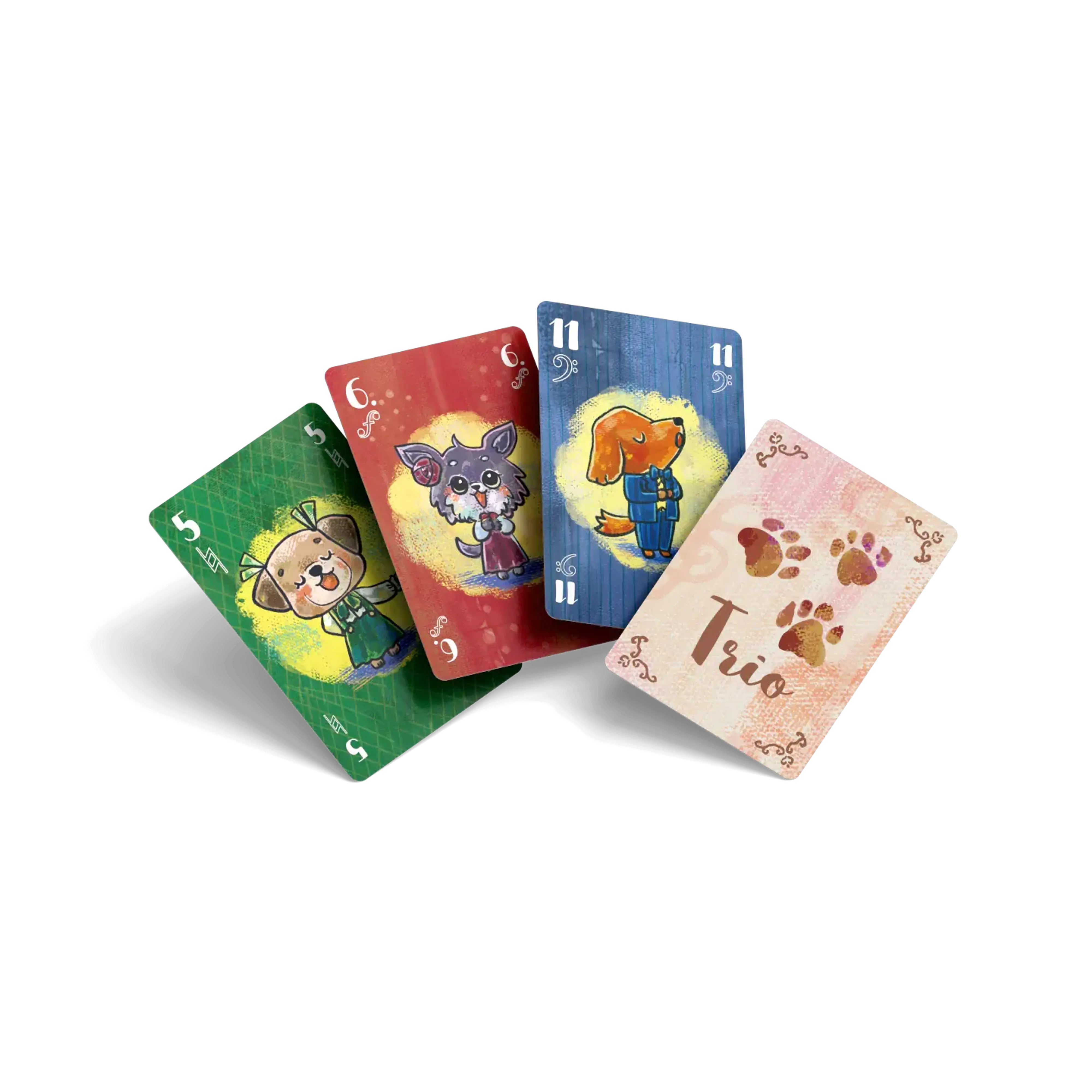It’s a trick-taking card game for 3–4 players that lasts about 20–30 minutes. Each round begins by revealing the type of harmony (Solo, Duet, Trio, Quartet), which determines how many different suits must be present in the trick. If a player doesn’t follow the harmony, they play “off-harmony” and cannot score points. The highest card in harmony earns 2 points, while the lowest scores its own value – meaning even the “bass notes” matter.