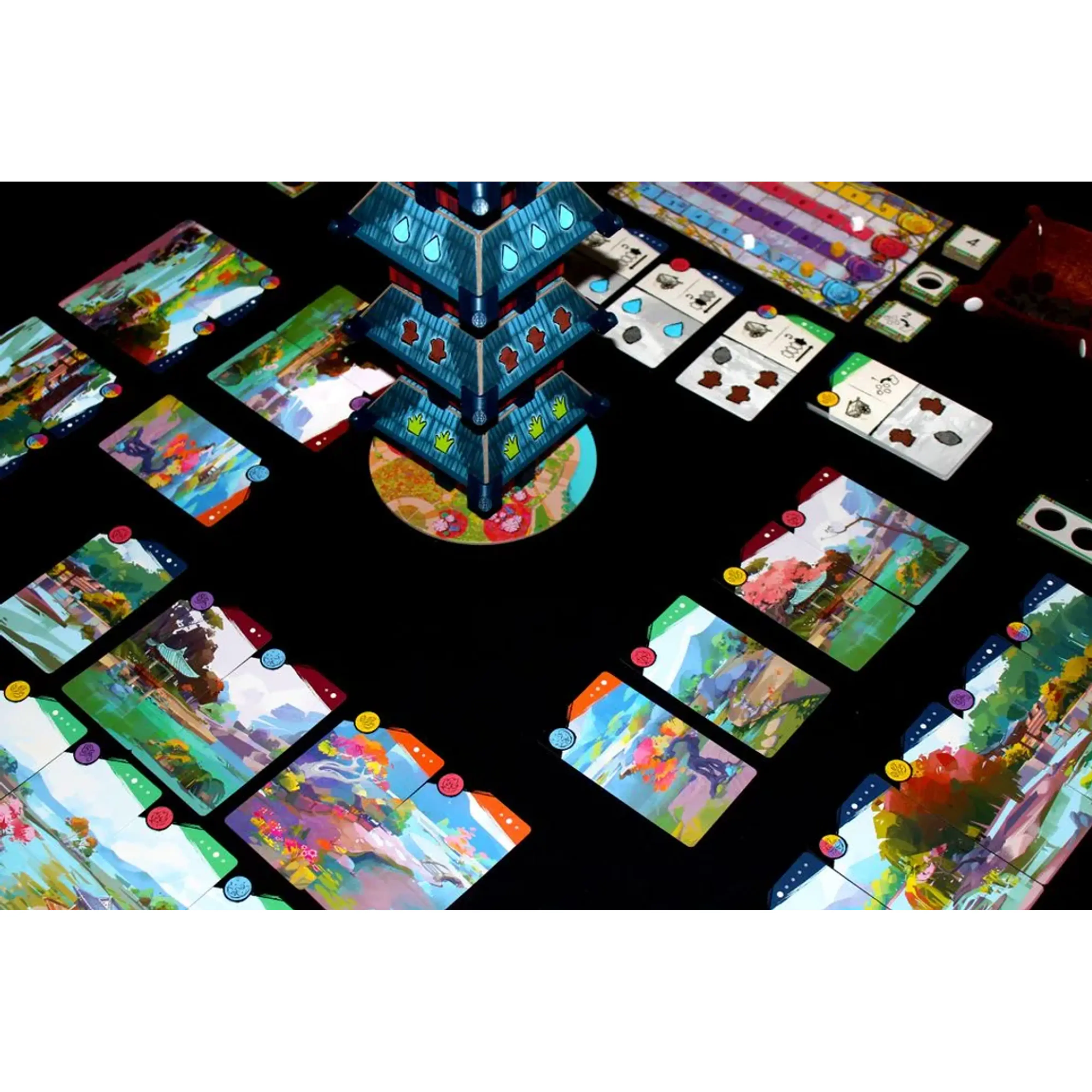 Igrači prikupljaju četiri vrste resursa koje dobivaju okretanjem tornja pagode. Svaka strana tornja prikazuje različitu količinu resursa, što znači da treba pažljivo planirati kada i kako okrenuti toranj. Karte imaju dvije strane – jedna prikazuje temelje, a druga panoramu. Igrači prvo moraju izgraditi temelje, a zatim odgovarajućim resursima dovršiti panorame. Pagoda nije samo ukras – ona je središnji element igre. Njezino okretanje određuje koje resurse igrač može dobiti, što dodaje taktičku dubinu i nepredvidivost. Igrači prikupljaju i slažu panorame koje se boduju prema duljini i skladnosti.