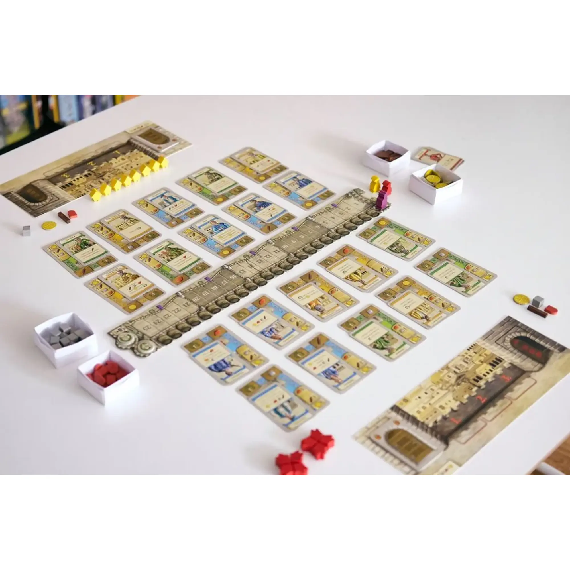 Igrači započinju s osnovnim kompletom karata koji tijekom igre nadograđuju novim, snažnijim kartama. Za izgradnju zgrada i aktivaciju karata potrebno je mudro upravljati resursima (novac, drvo, kamen). Na ploči za igru zgrade se postavljaju duž gradske ulice, što utječe na dostupnost i strategiju. Svaka zgrada povezana je s povijesnim likom koji pri aktivaciji nudi posebne sposobnosti. U svakom potezu igrač odigra tri karte, što omogućuje kombinacije i taktičko planiranje.