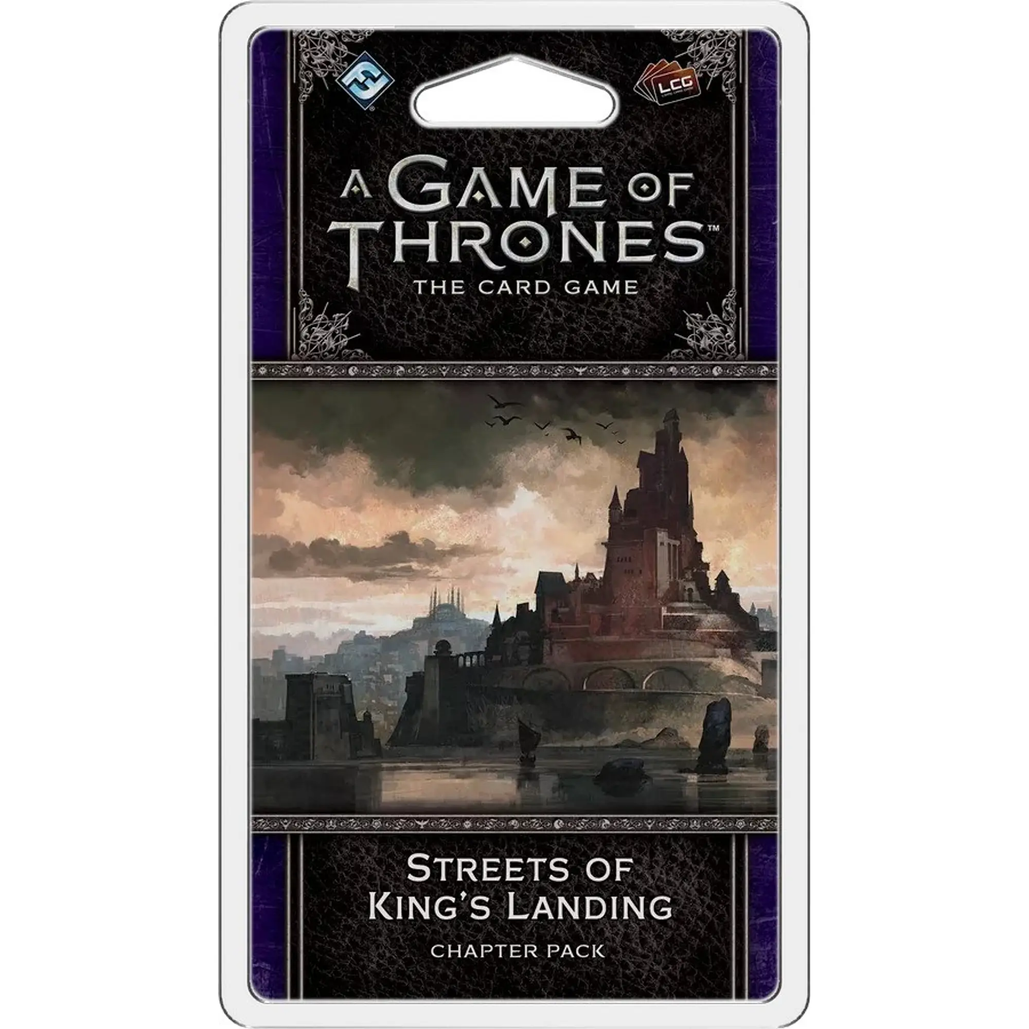 Streets of King's Landing je tretji Chapter Pack v ciklu "Dance of Shadows" za igro A Game of Thrones: The Card Game. Vsebuje tri izvode dvajset novih kart, ta pack pa vas potopi v svet Georgea R. R. Martina iz serije Pesem ledu in ognja. Ko se zgodba nadaljuje skozi Ples z zmaji, se tisti, ki igrajo igro prestolov, znajdejo brezizhodno obkroženi z nasprotniki. V Kraljevem pristanu Cersei Lannister težko obdrži moč, saj Tyrelli in Vera Sedmerice razdvajata zvestobo prebivalcev prestolnice. Na Zidu Jon Snow prevzame vlogo lorda poveljnika Nočne straže, vendar ima težave pri usklajevanju zahtev dolžnosti z zahtevami morale. Končno, v Essosu, Daenerys Targaryen je postala kraljica Meereena, a kmalu ugotovi, da se resničnosti vladanja močno razlikujejo od pričakovanj.