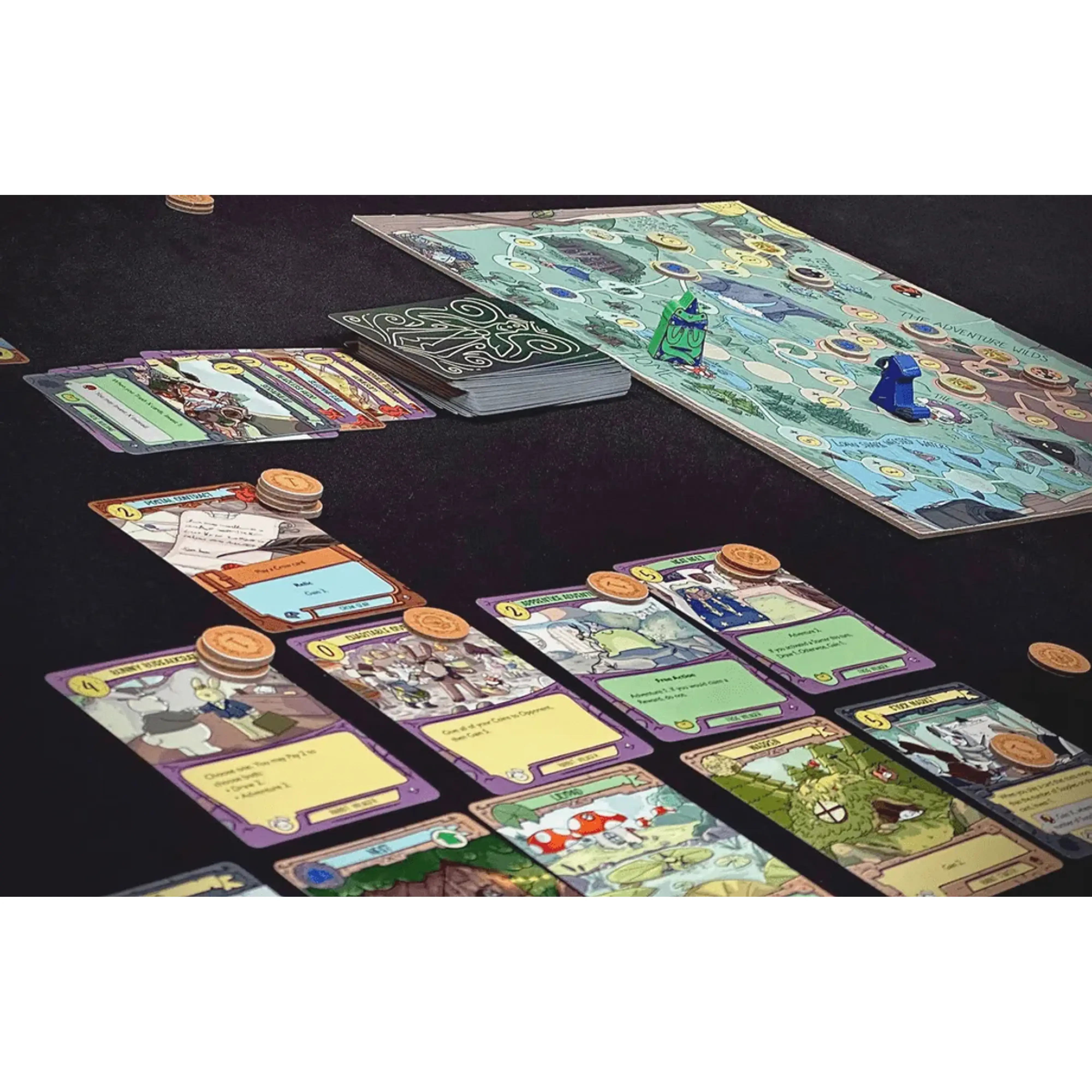 Igralci gradijo svoj sistem kart z zmogljivimi kombinacijami, a kartice ne ostanejo večno – šele ko so popolnoma »porabljene« in jih odstranite iz svojega pogona, prinesejo točke. Oba igralca črpata iz istega nabora več kot 100–108 unikatnih kart, zato je tekmovalnost velika: treba je pravočasno pograbiti prave kombinacije. Z izpolnjevanjem mini‑pustolovščin, pridobivanjem kovancev in izbiranjem pravih akcij si igralca gradita ekonomijo, s katero povečata učinkovitost svojega pogona. Dvostranska pustolovska plošča in dva tematska seta omogočata raznolike izzive in večjo ponovljivost.