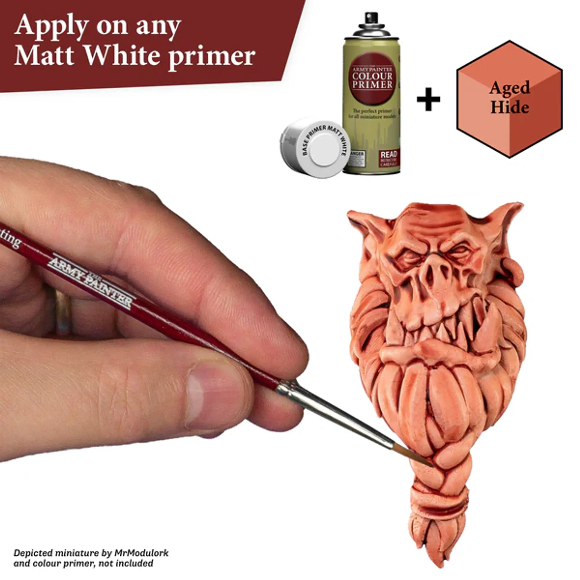 Aged Hide je del posodobljene linije Speedpaint 2.0, zasnovane za hitro, enoplastno barvanje miniatur. Odtenek je opisan kot bledo rumenkasto rožnata barva, kar ga naredi odličnega za ton kože, usnje, posvetlene živalske površine, staro pergamentno barvo ali blede organske teksture.