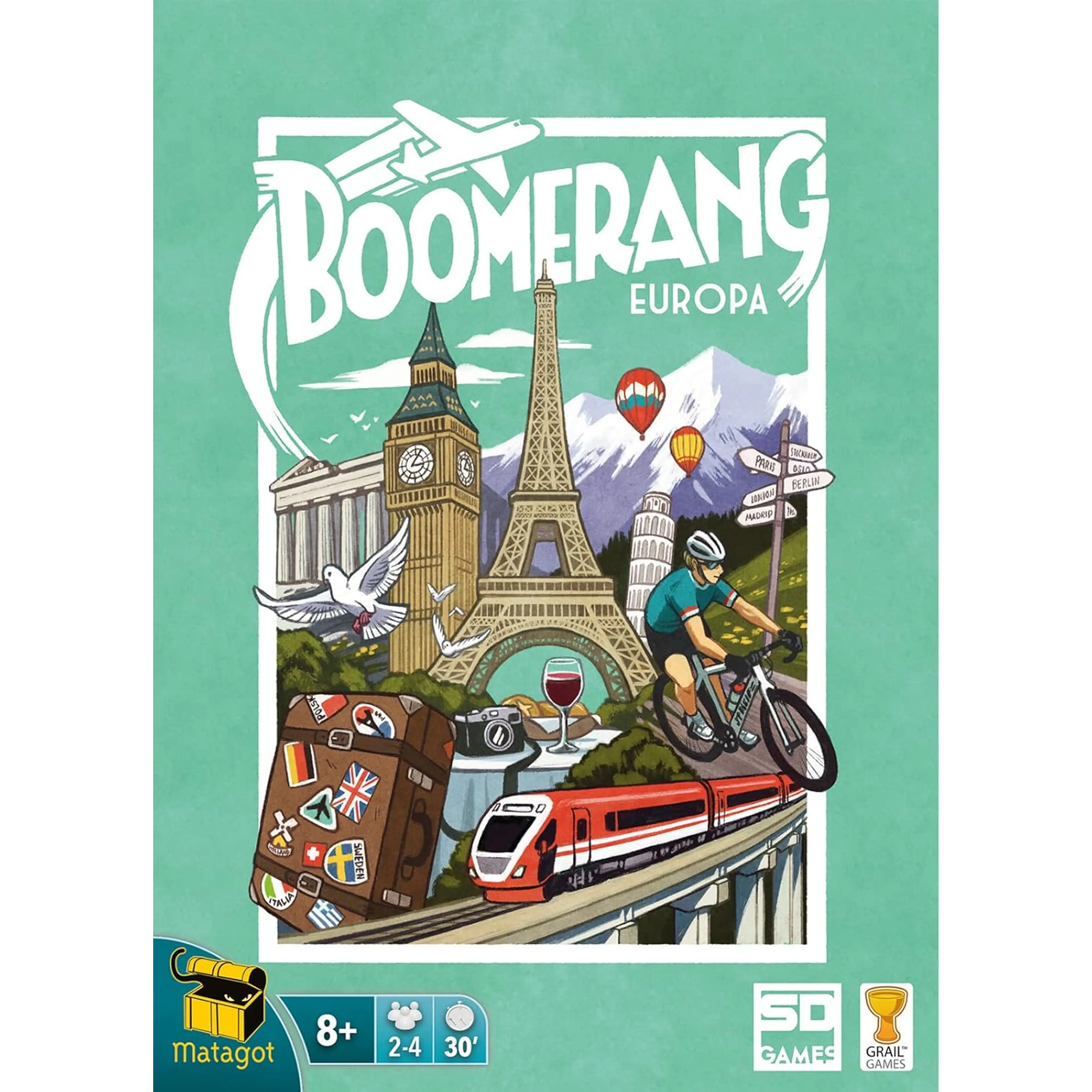 "Boomerang: Europe" je samostojna igra iz serije Boomerang, ki združuje mehaniki izbire kart (drafting) in zapisovanja rezultatov (roll-and-write). Igralci raziskujejo evropske države, zbirajo spominke, okušajo lokalne kulinarične specialitete in uporabljajo različna prevozna sredstva za potovanje med destinacijami. Cilj je zbrati čim več točk z obiskom različnih držav in zbiranjem ustreznih kombinacij kart.
