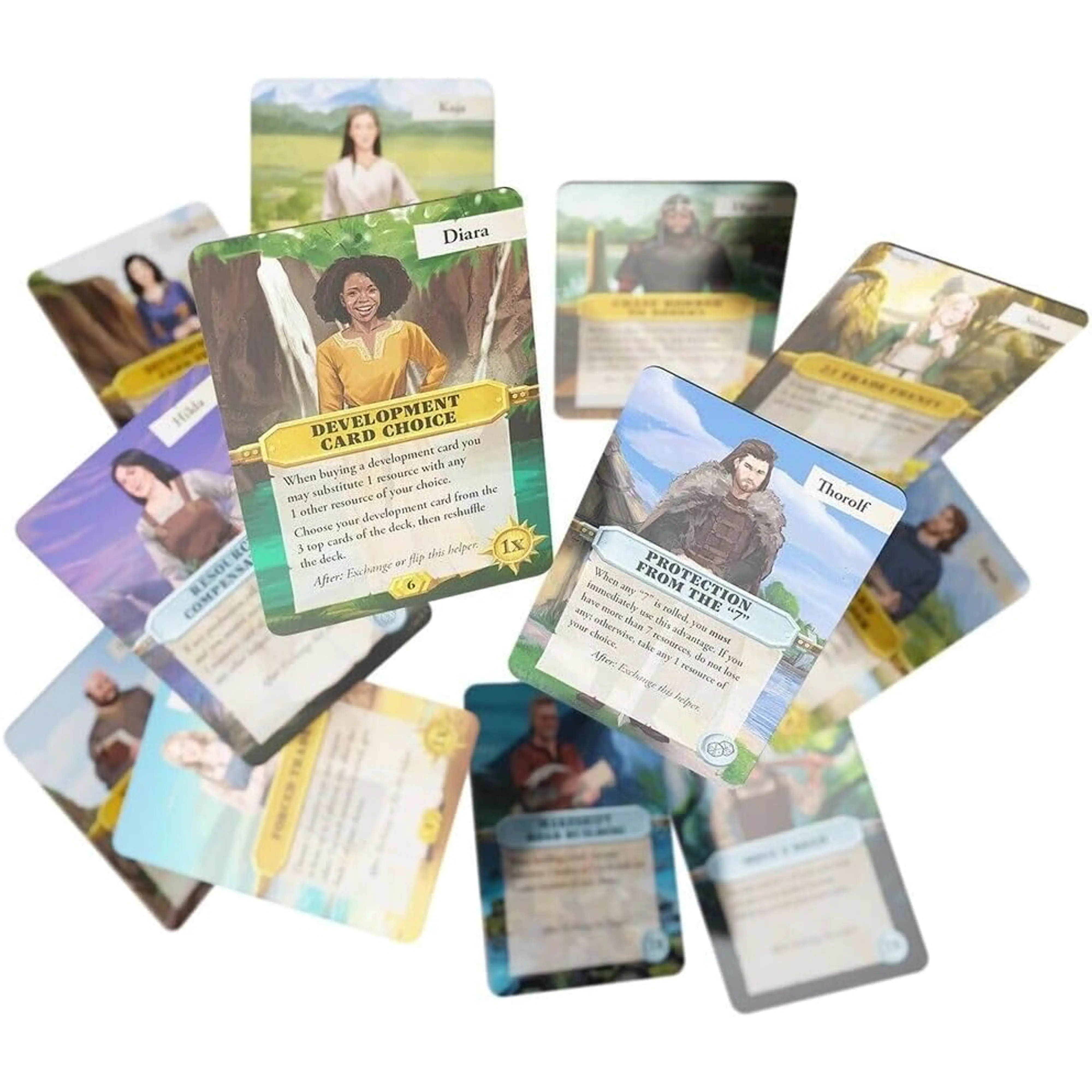 V tej razširitvi so na otoku Catan prisotni posebni "Pomočniki" – raznoliki prebivalci otoka, ki so pripravljeni pomagati igralcem na različne načine. Vsak lik ima edinstvene sposobnosti, ki lahko igralcem pomagajo hitreje napredovati, učinkoviteje upravljati z viri ali se izogniti neprijetnim situacijam.