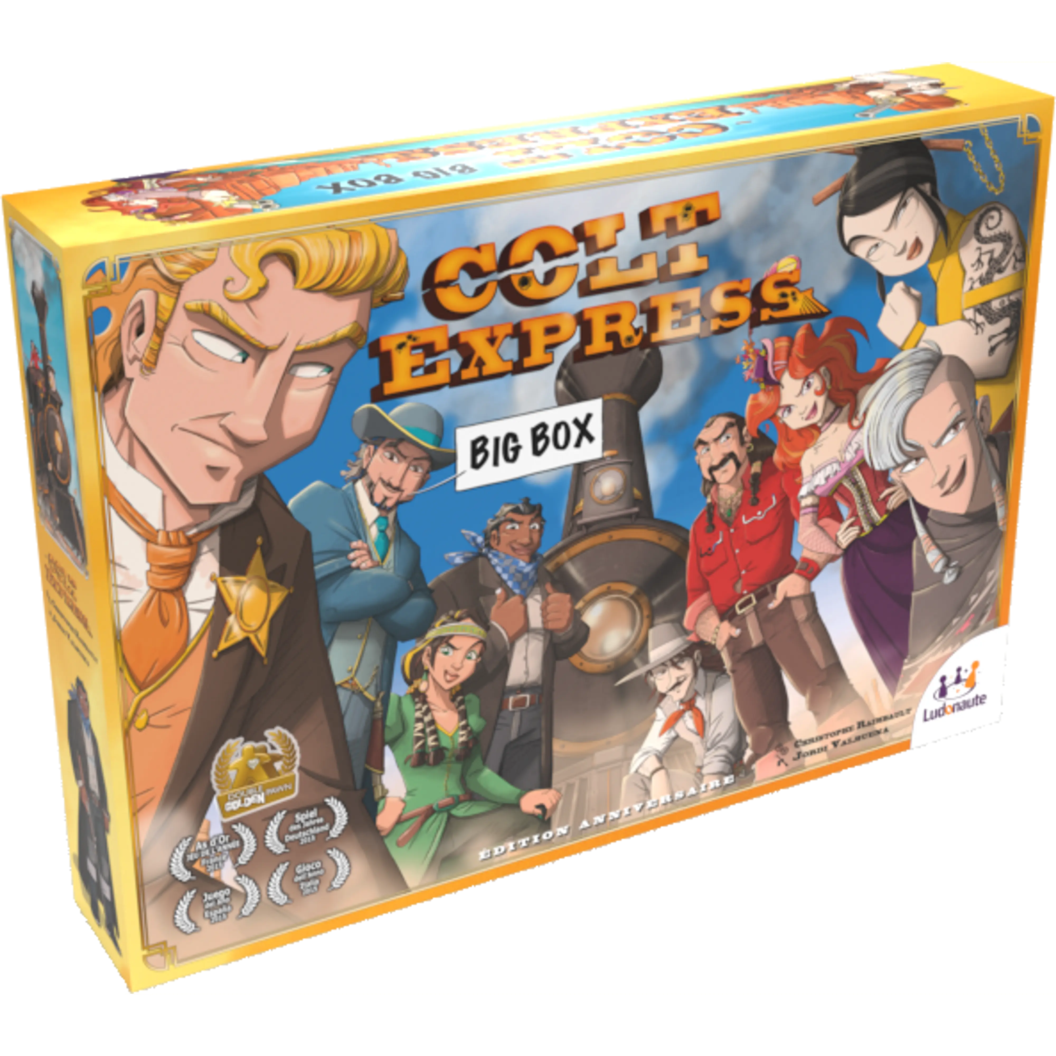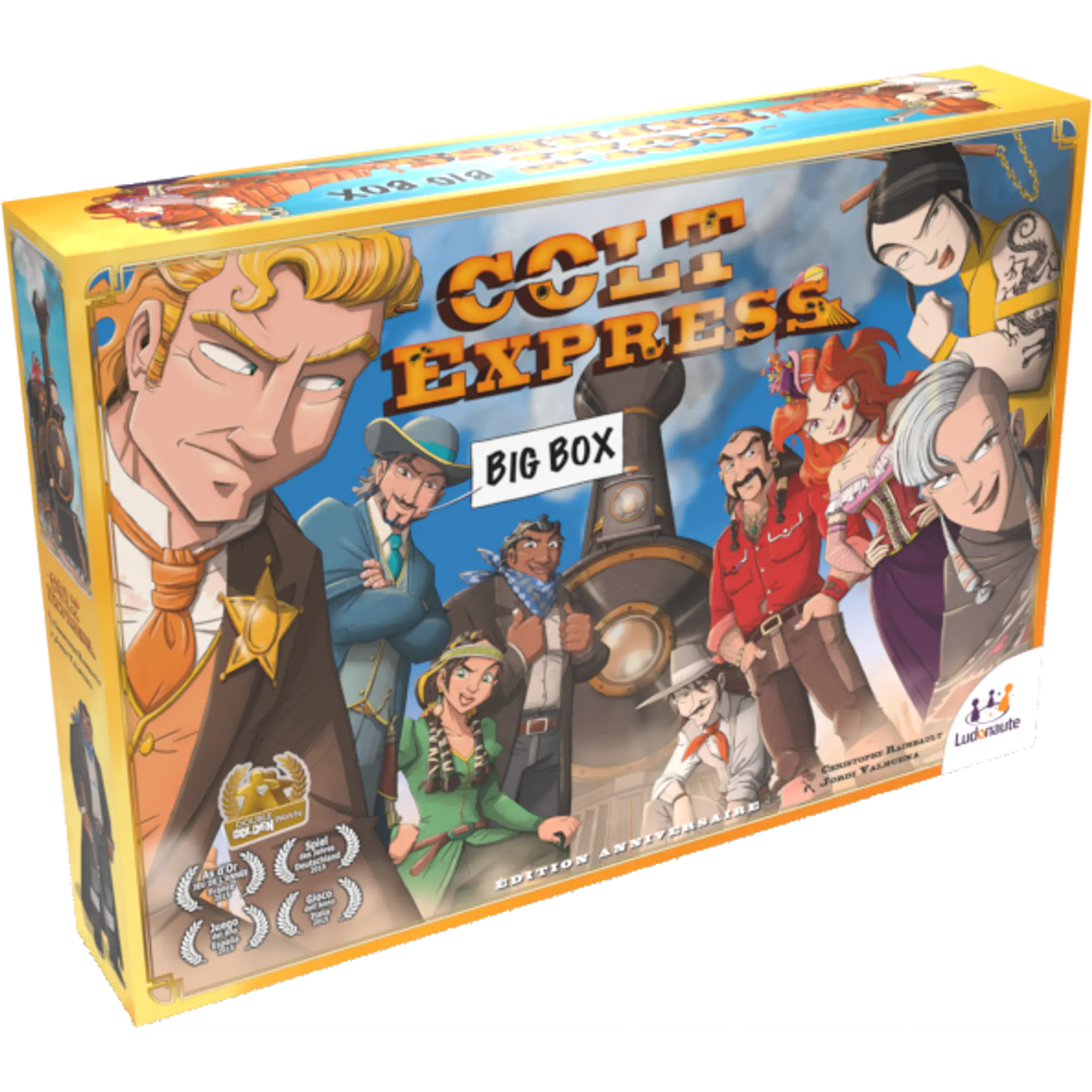 "Colt Express: Big Box" je obsežna izdaja priljubljene družabne igre "Colt Express", ki vključuje osnovno igro, razširitvi "Horses & Stagecoach" ter "Marshal & Prisoners".
