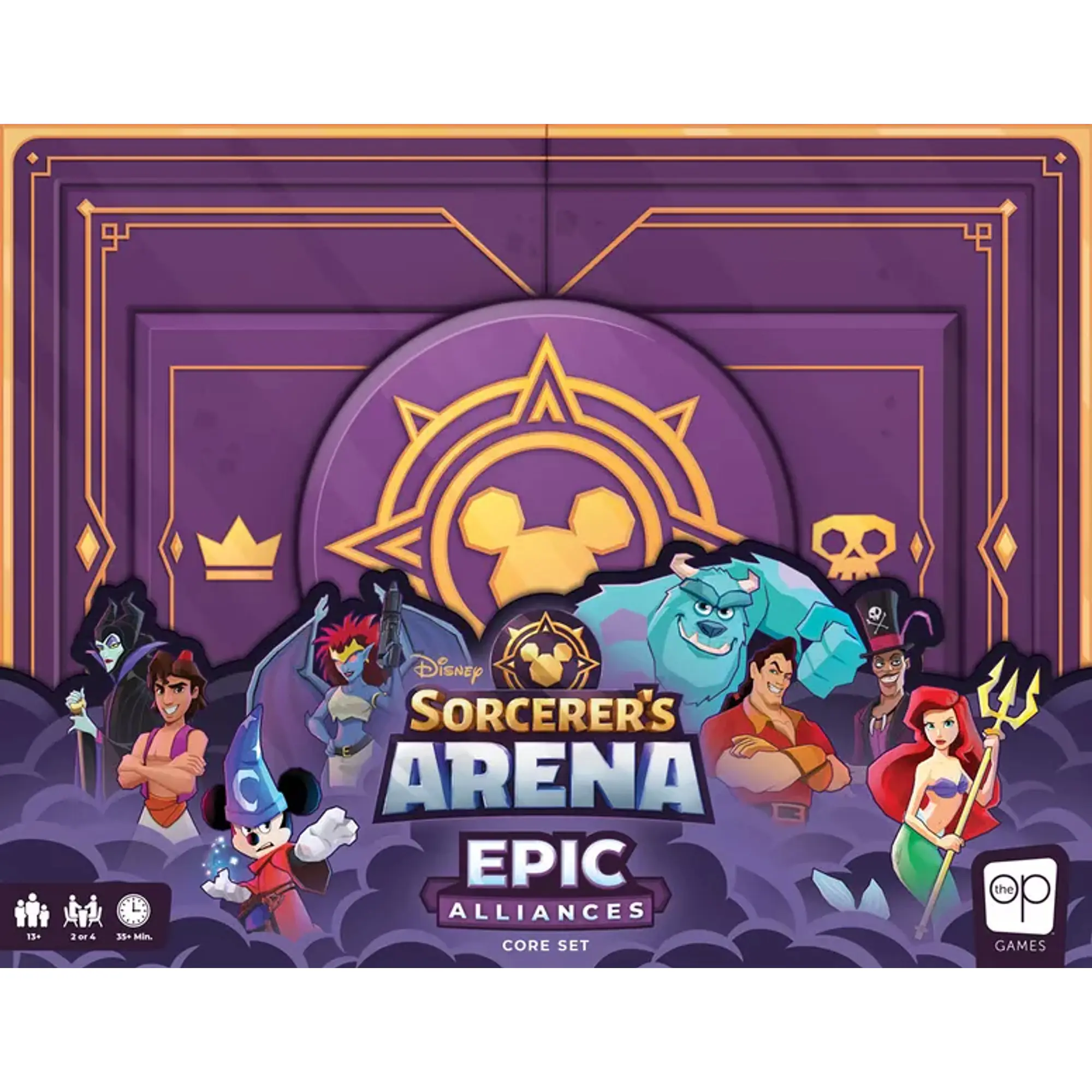 Disney's Sorcerer's Arena: Epic Alliances – Core Set je taktična družabna igra za 2 do 4 igralce, ki združuje priljubljene Disneyjeve in Pixarjeve like v dinamičnih bojih na šesterokotnem igralnem polju. Igralci sestavijo ekipe iz treh junakov ali zlikovcev ter s pomočjo kart izvajajo premike, napade in posebne sposobnosti, da dosežejo 20 zmagovalnih točk.