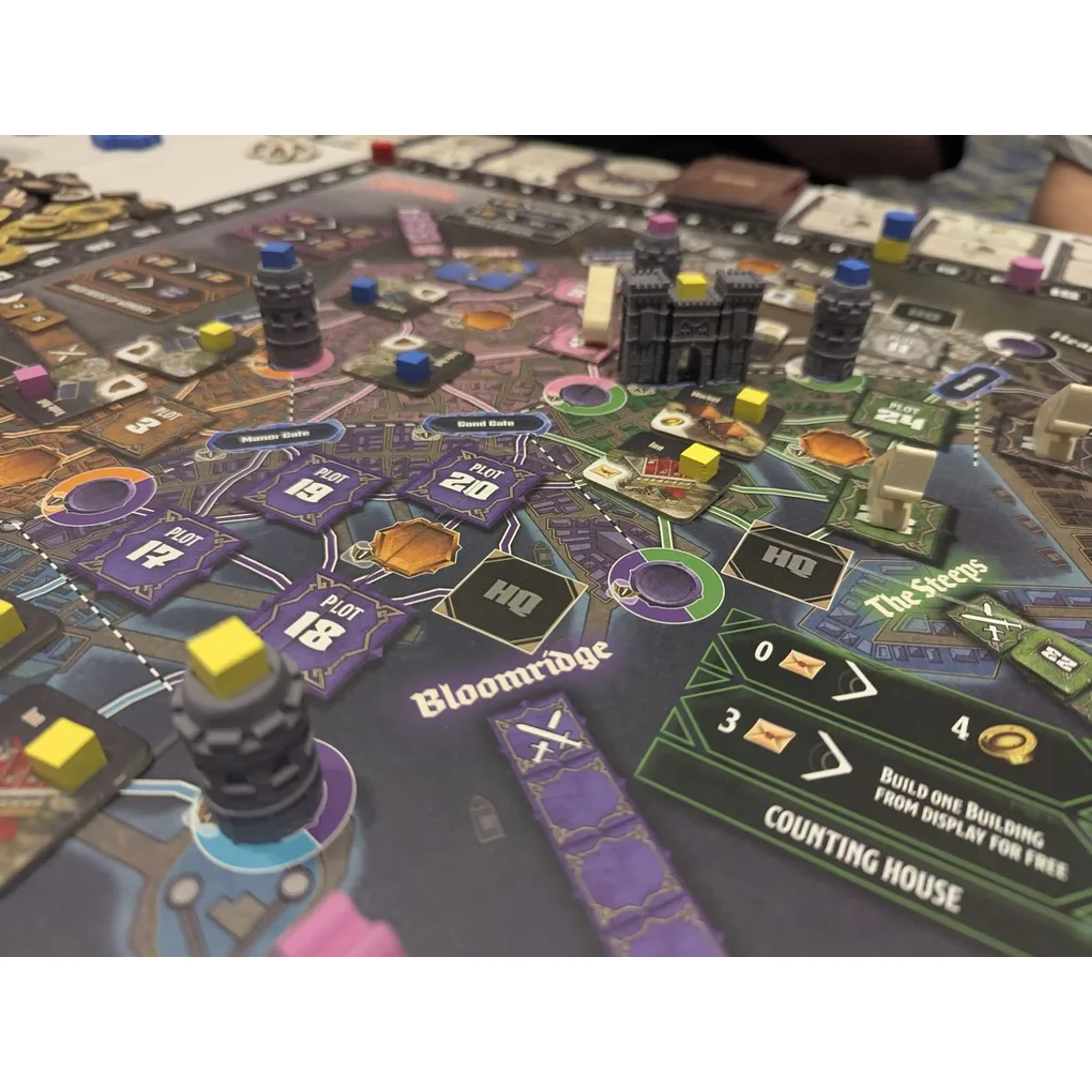 Igralci postavljajo stavbe in posebne strukture (vrata, utrdbe, stolpe), ki omogočajo 3D rast mesta. Vsaka stavba prejme kocko vpliva, ki označuje nadzor igralca nad njo. Igralci si prizadevajo za podporo frakcij, kar vpliva na točke in posebne bonuse. Pošasti napadajo mesto, kar zahteva sodelovanje med igralci – a vsak poskuša iz krize iztržiti največ zase. Vsaka družina ima skrivne cilje, ki usmerjajo strategijo in prinašajo dodatne točke.