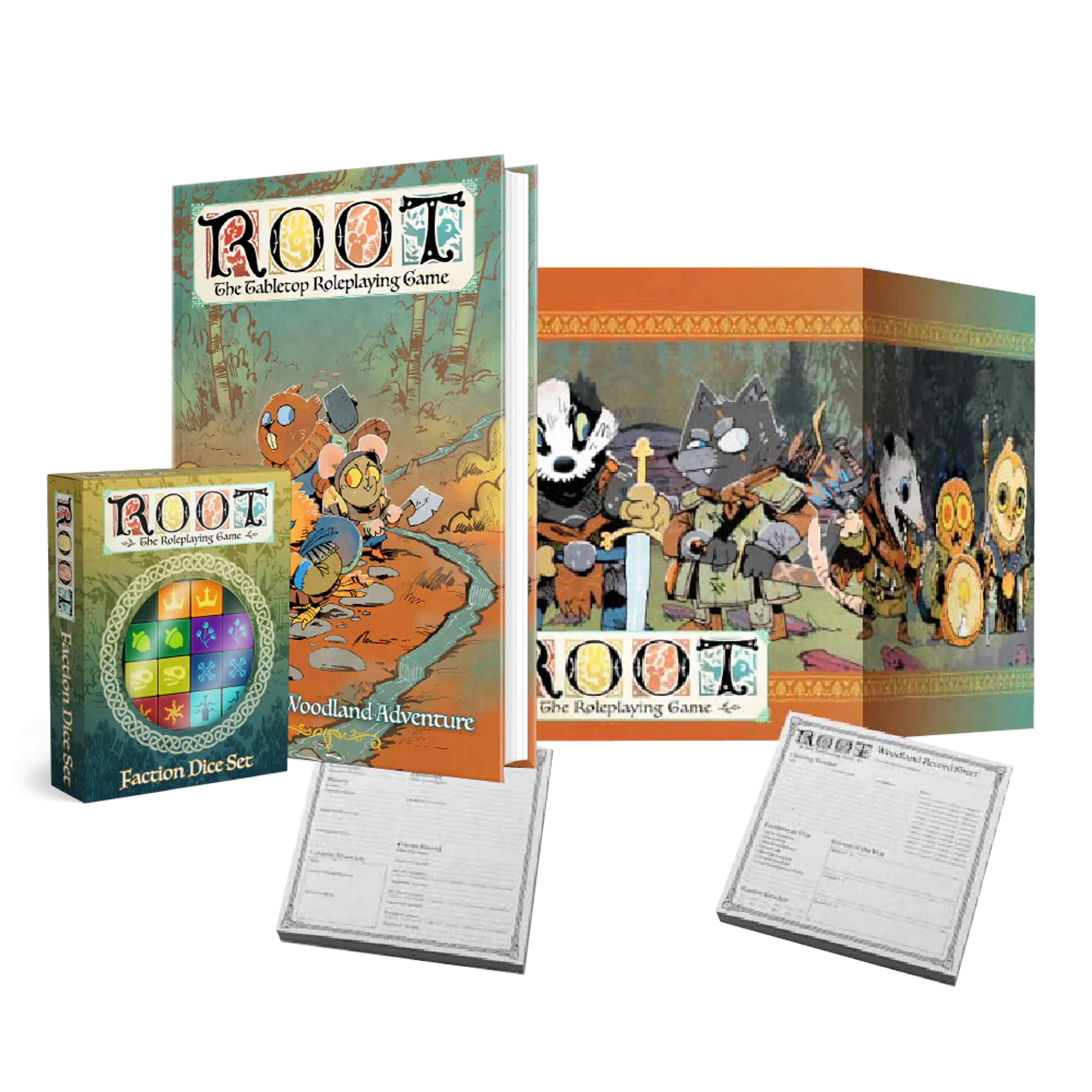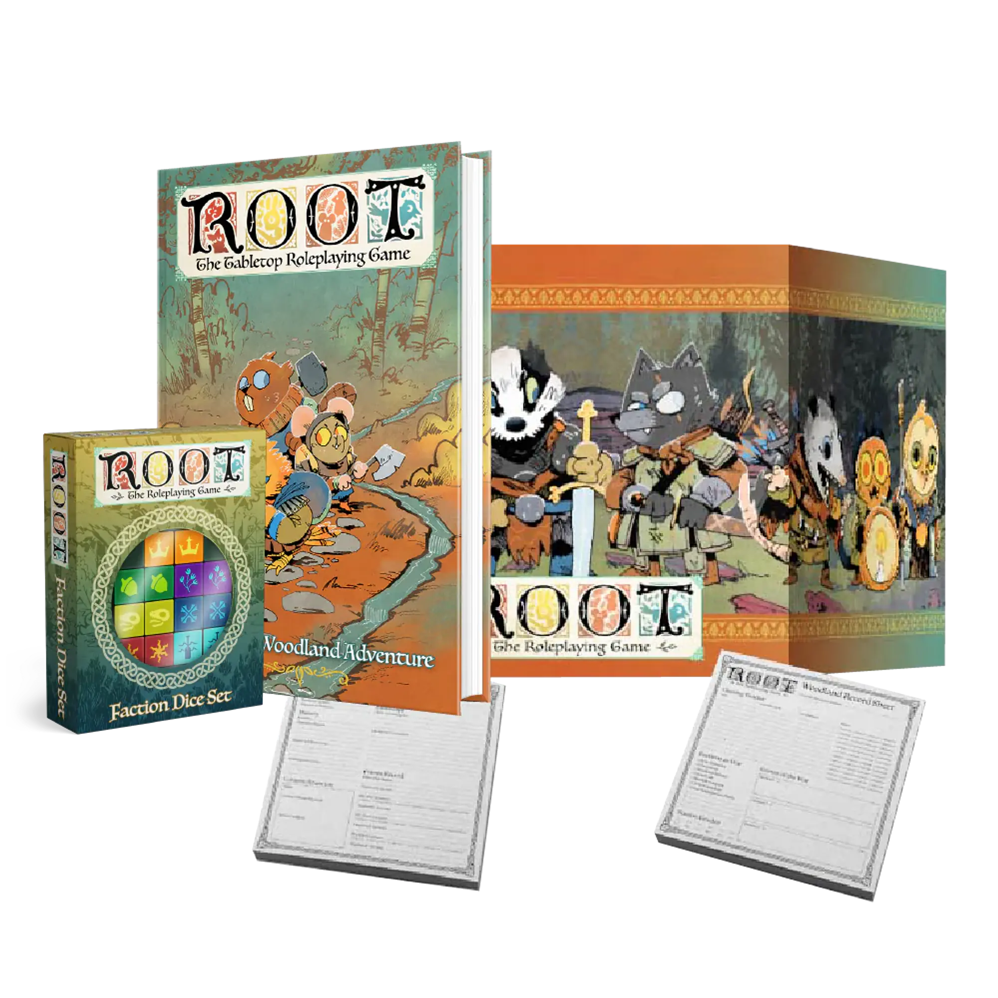 Root: the RPG - Essentials Bundle je popoln komplet za igralce, ki želijo vstopiti v očarljivi svet Root: The RPG, igranja vlog, zasnovanega po priljubljeni družabni igri Root. Ta paket vključuje vse potrebno za vodenje in igranje kampanj v tem pisanem, politično napetem svetu.