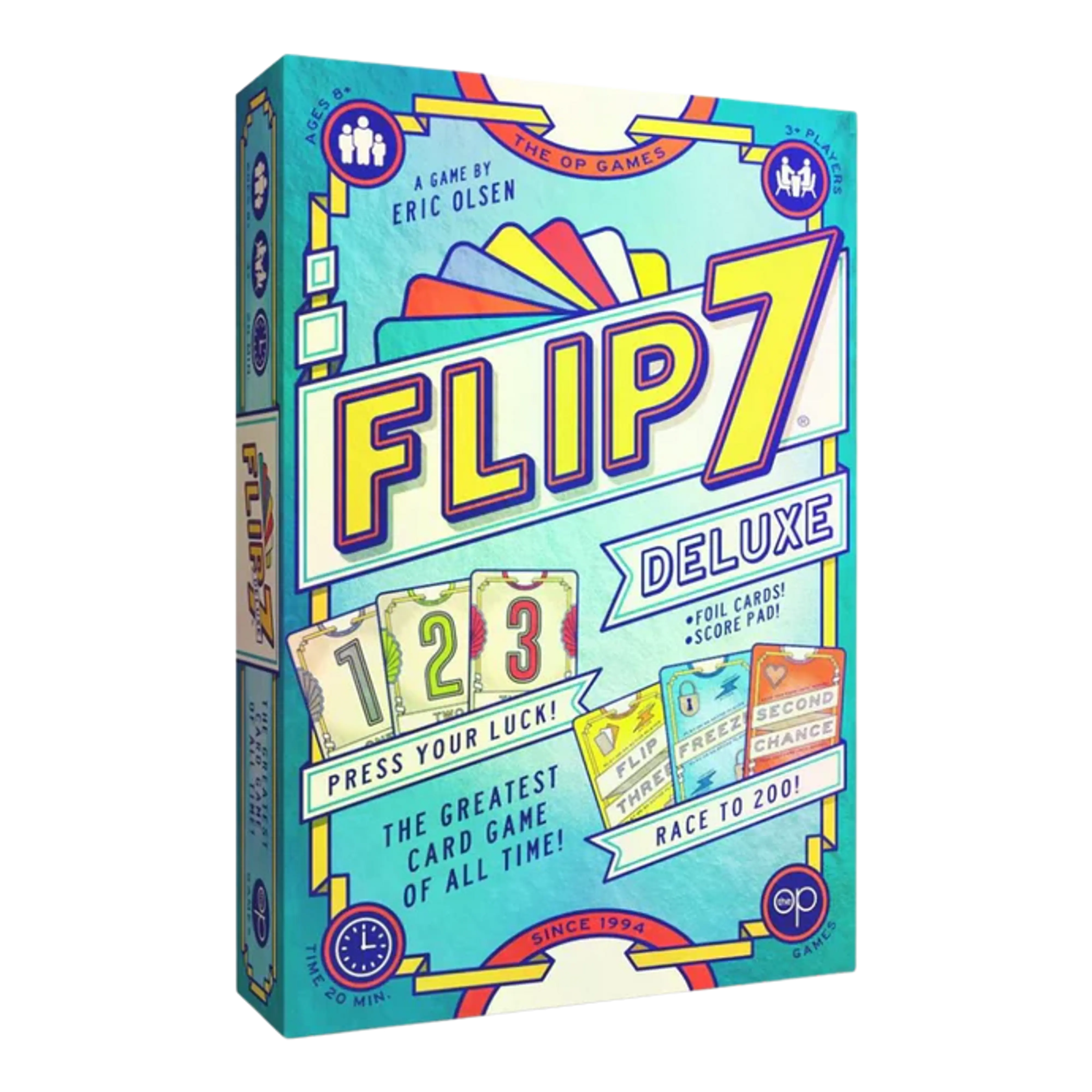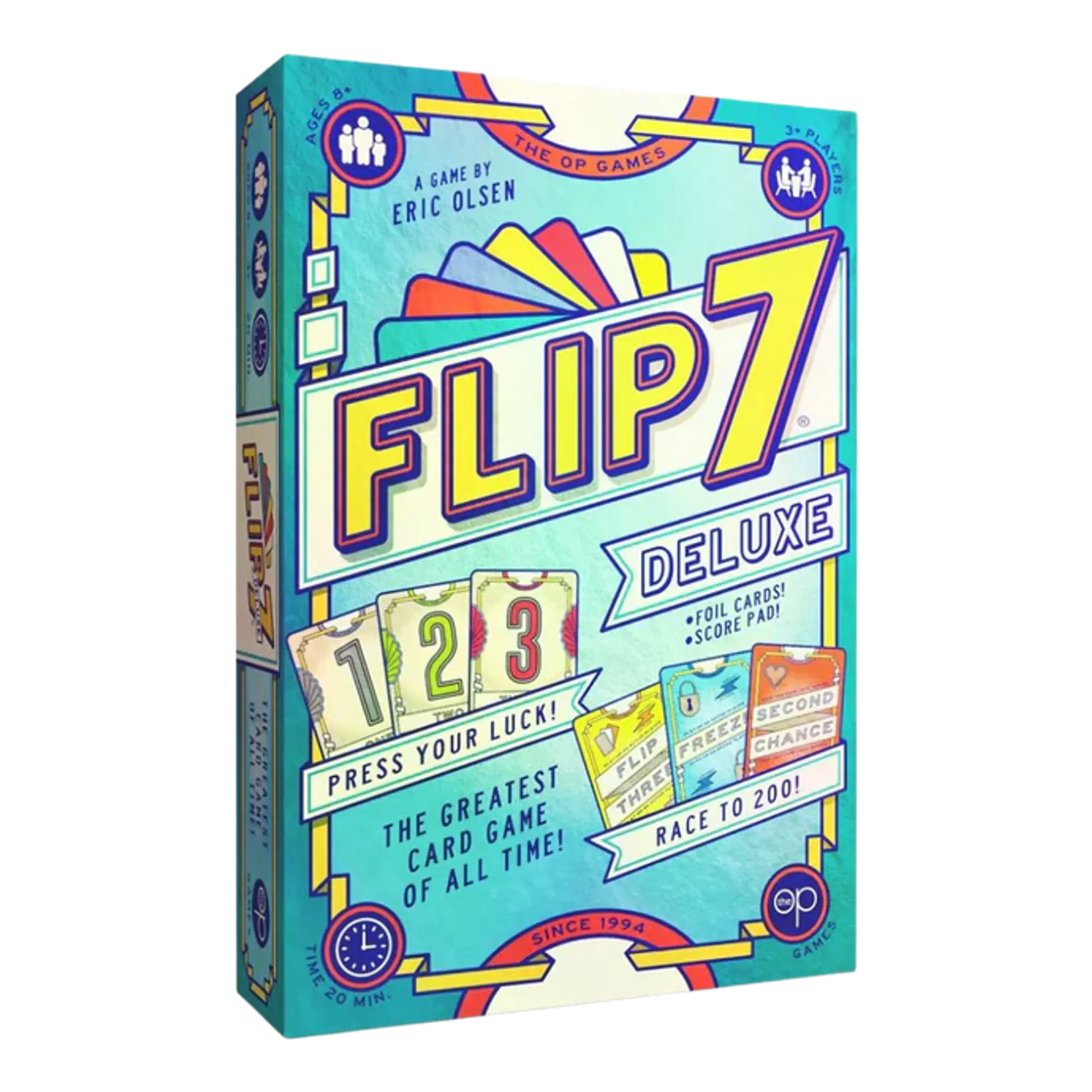 Flip 7 je hitra press-your-luck (tvegaj za več točk) družabna igra, v kateri igralci obračajo karte eno za drugo ter poskušajo nabrati čim več točk, ne da bi dvakrat razkrili isto številko. V tem nenavadnem kupu kart je število kart določene vrednosti enako sami številki — npr. ena karta 1, dve karti 2, tri karti 3 itd. Poleg številčnih kart vključuje tudi posebne akcijske in modifikatorske karte, ki ustvarjajo presenečenja, preobrate in napeto atmosfero.