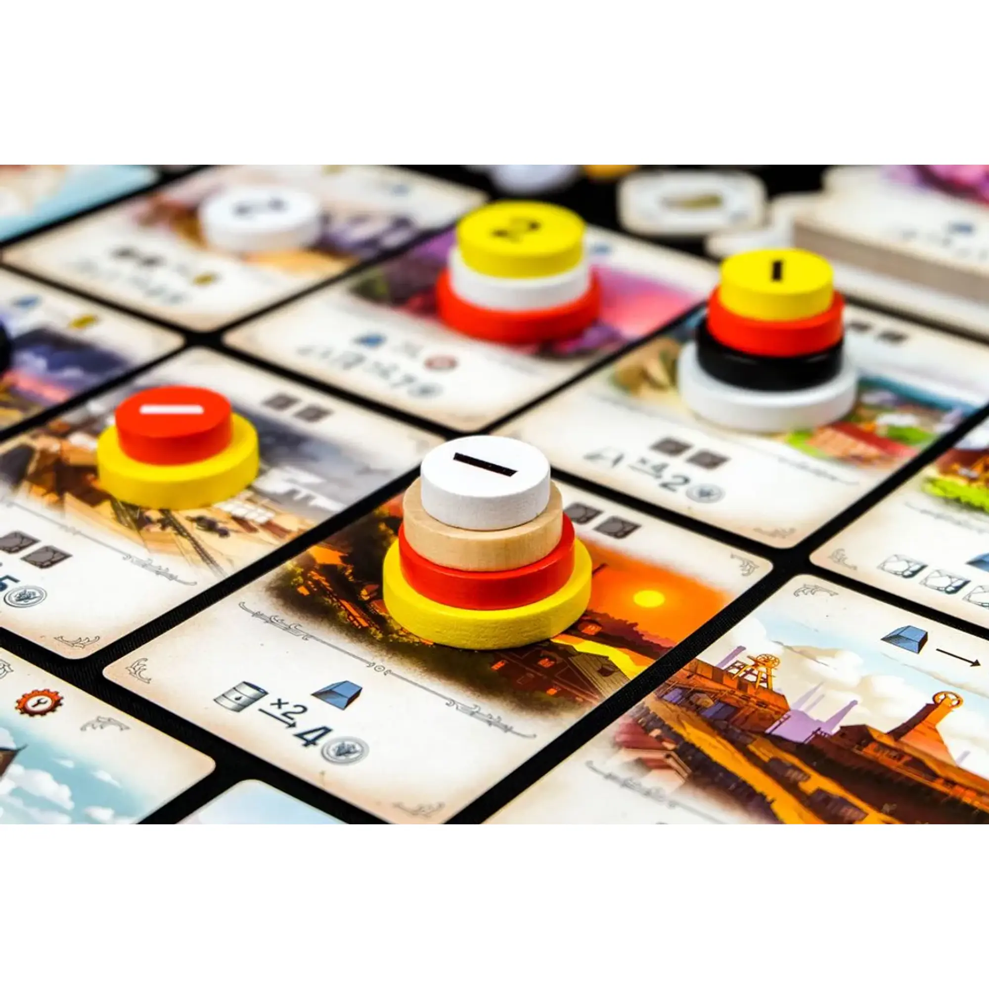 -Igralci se potegujejo za industrijske karte z uporabo omejenega števila žetonov dražbe. Dražba je inovativna, saj igralci, ki ne dobijo kart, prejmejo kompenzacijske bonuse, kar pomeni, da je tudi izguba strateško koristna.