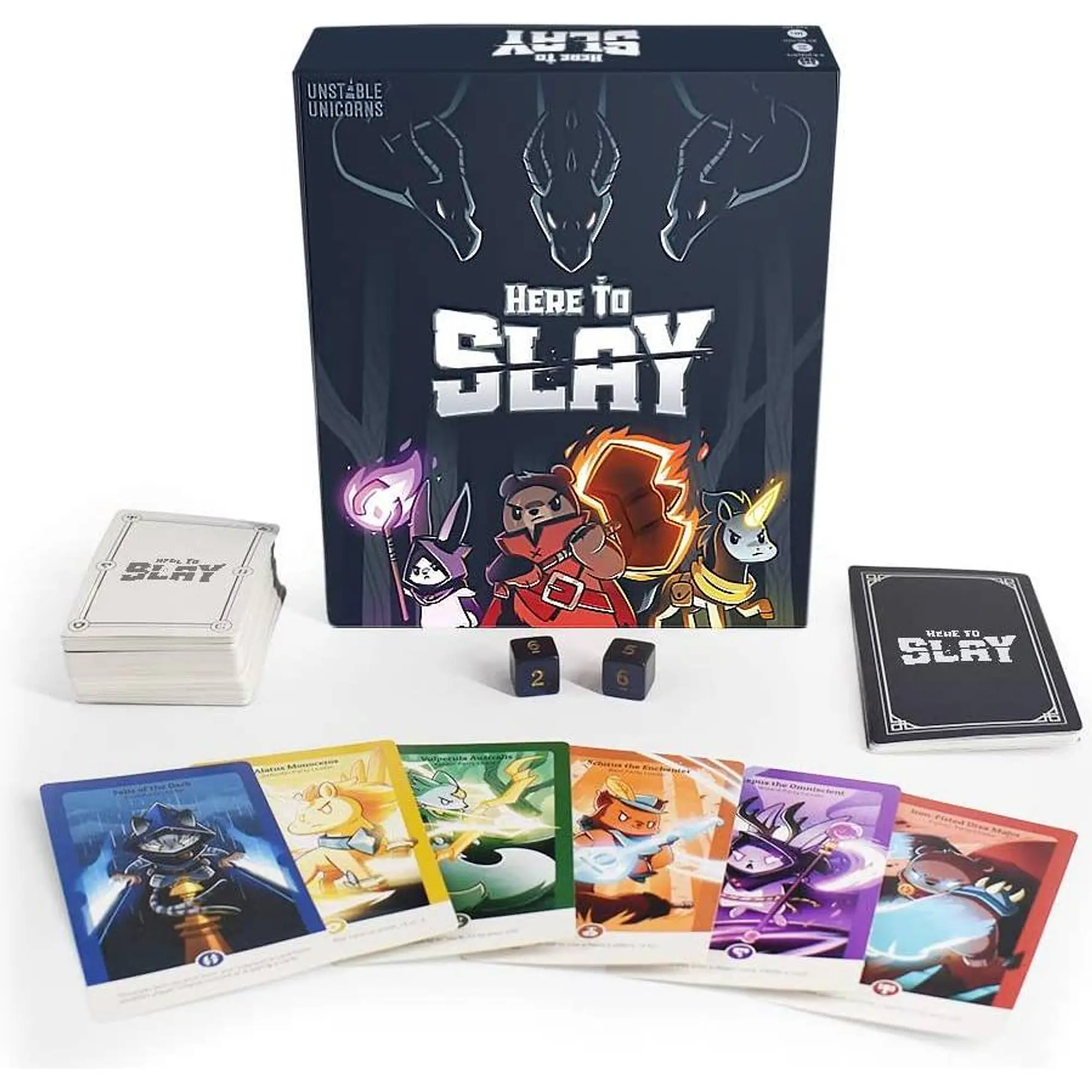 Here to Slay je družabna igra s kartami, ki združuje prikupno estetiko s taktično sabotažo in fantazijskim bojem. Gre za delo ustvarjalcev igre Unstable Unicorns, kar pomeni, da lahko pričakuješ kombinacijo humorja, strategije in prikupnih ilustracij.