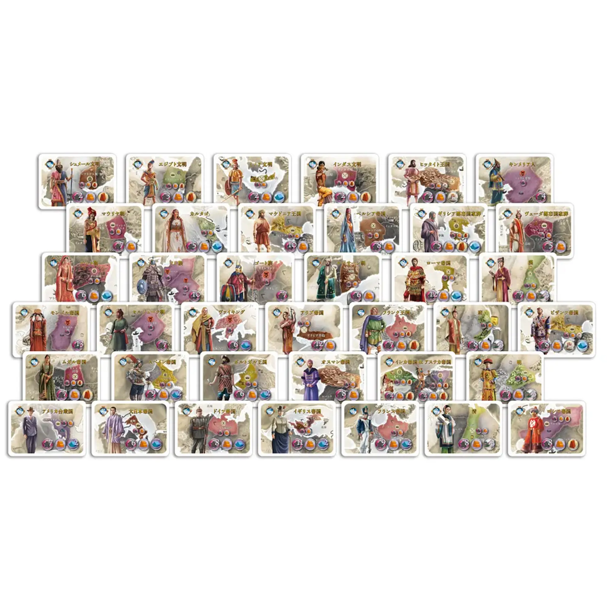 Igralci v igri ne vodijo ene same civilizacije, temveč v vsakem zgodovinskem obdobju (t.i. epohi) prevzamejo nadzor nad novo civilizacijo. Tako se skozi igro zvrstijo imperiji, kot so Rimljani, Mongoli, Britanci, Azteki itd. Vsaka civilizacija ima svojo začetno lokacijo, vojaško moč in posebnosti, ki vplivajo na njen uspeh v danem obdobju.