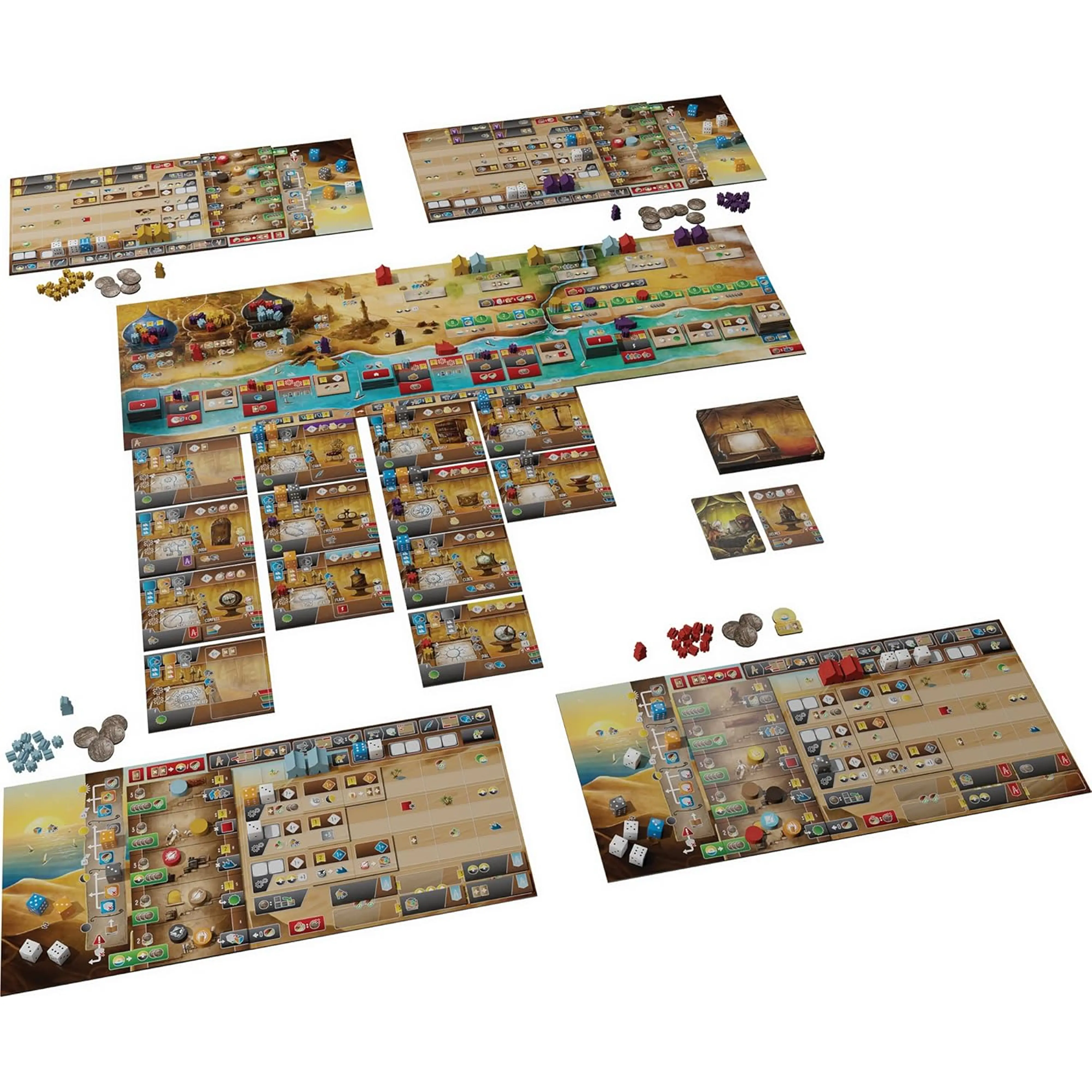 Kocke različnih barv predstavljajo delavce, ki jih igralci uporabljajo za izvajanje akcij. Vsak izum gre skozi štiri faze – izumljanje, gradnja, testiranje in objava. Vsako fazo lahko izvede drug igralec, kar spodbuja konkurenčno sodelovanje. Igralci upravljajo z obrtniki, kovanci, vplivom in raziskovalnimi ploščicami. Obrtniki se vzpenjajo po stolpu mojstrstva, kar prinaša večje bonuse, a tudi večje stroške. Ladja se premika po glavni plošči in omogoča nadgradnje delavnic ter pridobivanje raziskovalnih ploščic. Barve kock (modra, rumena, črna) vplivajo na bonuse pri akcijah. Na koncu vsakega kroga igralci postavijo šotor, kar določa vrstni red v naslednjem krogu in prinaša bonuse.