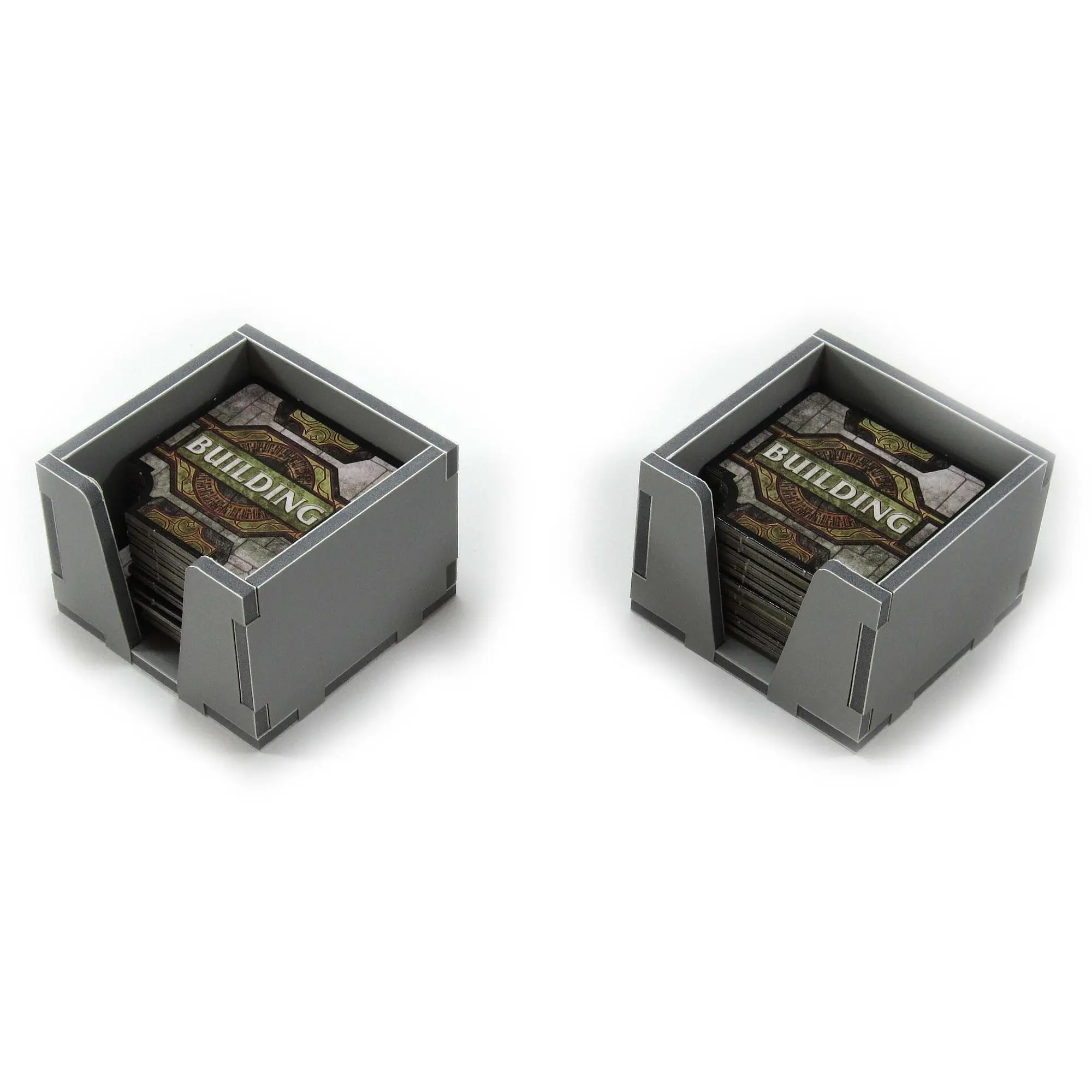 Vložek je razporejen v največ dve plasti. Pladnji omogočajo ločeno shranjevanje vsake vrste kart, pa tudi gradbenih ploščic. Obstajajo ločeni pladnji za vsakega igralca, da lahko vzame svoje barvne komponente in jih uporablja med igro. Tudi pustolovske kocke imajo ločene predale za lažji dostop.