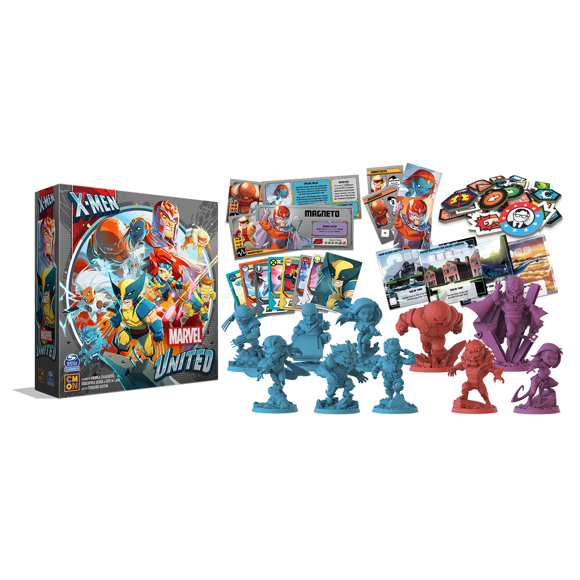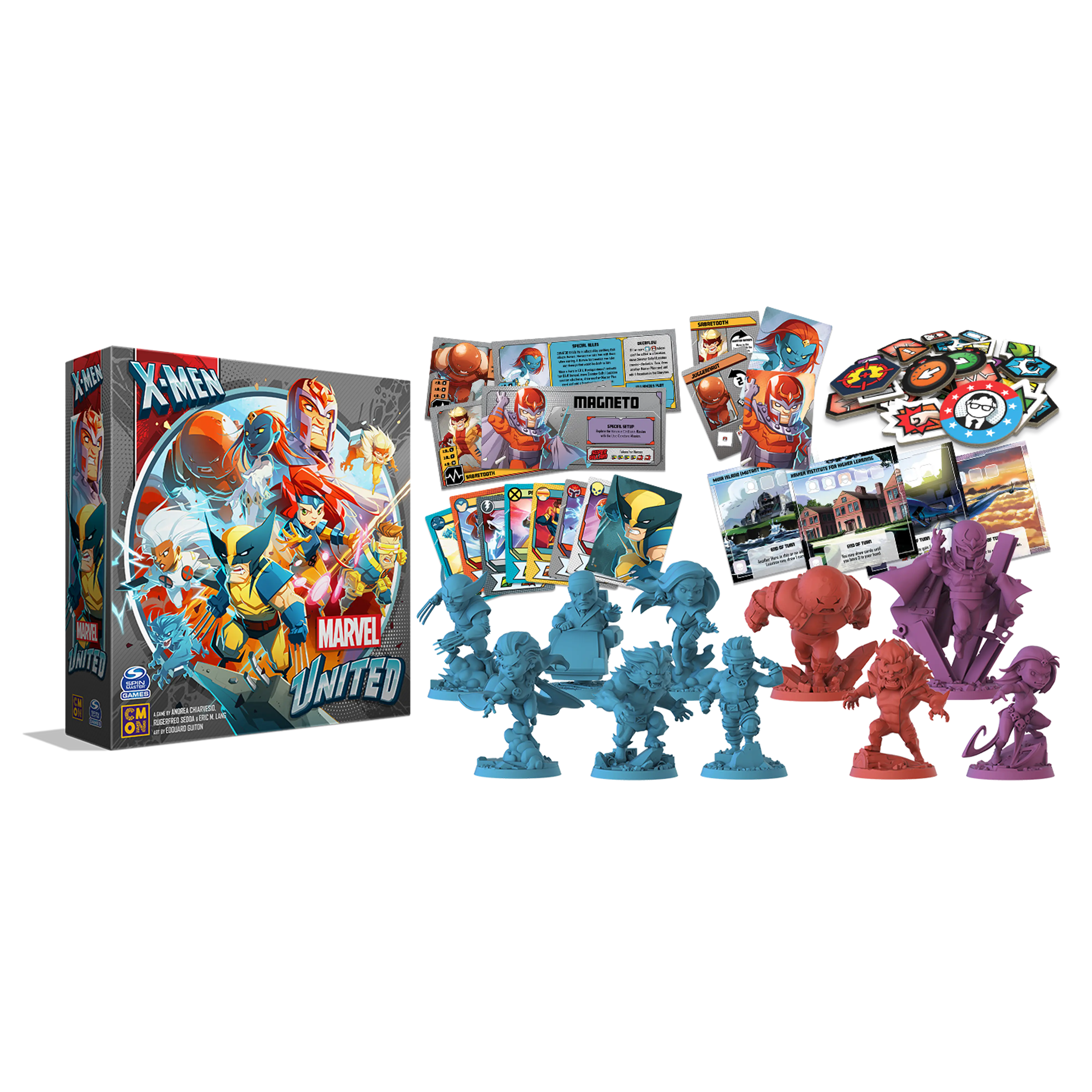 Marvel United: X-Men je samostojna razširitev priljubljene igre Marvel United, ki igralce postavi v središče mutantskega konflikta med X-Meni in njihovimi ikoničnimi sovražniki, kot so Magneto, Juggernaut in drugi. Gre za kooperativno igro za 1–5 igralcev, ki traja približno 40 minut, z možnostjo solo igranja ali enega igralca v vlogi superzlobneža.