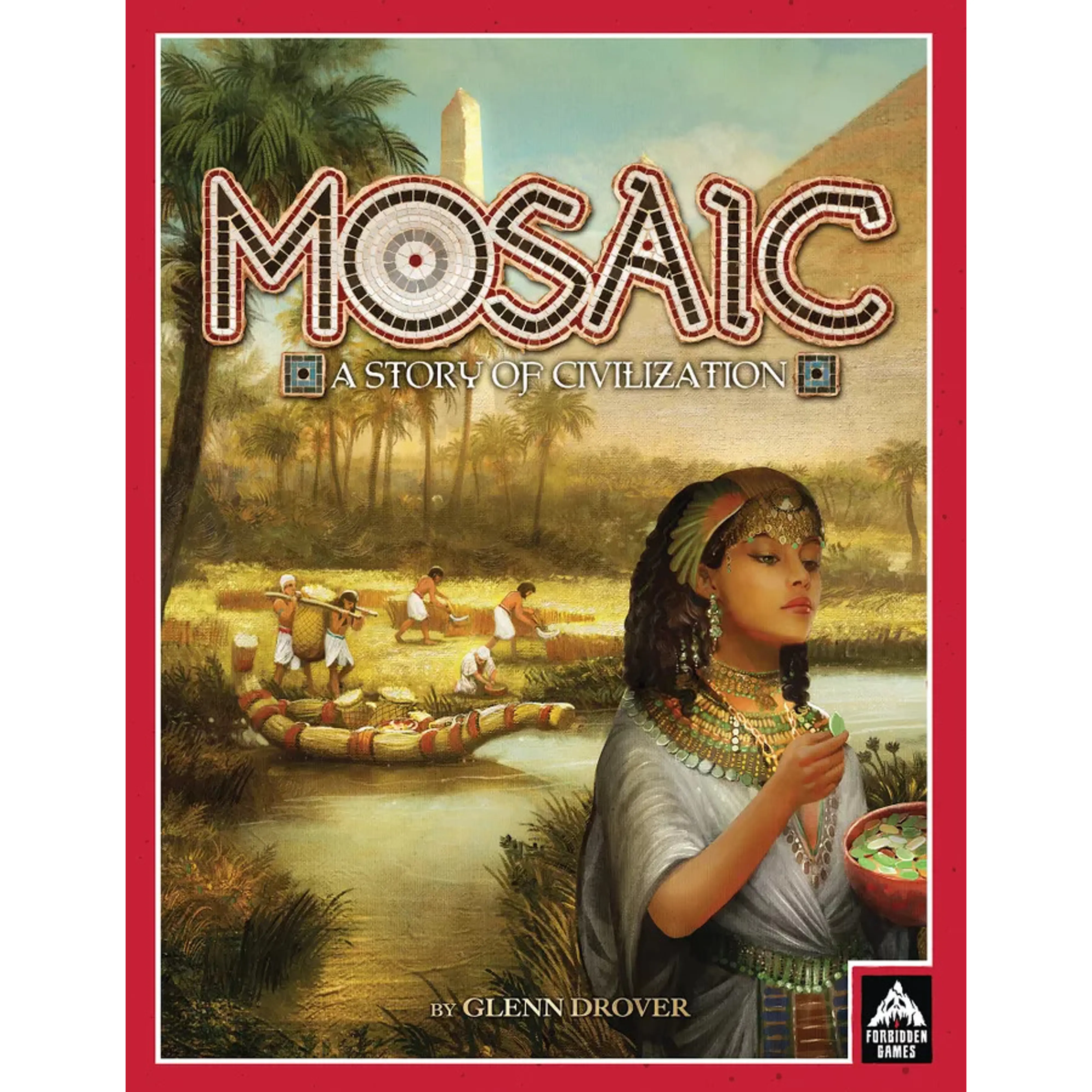Mosaic je strateška družabna igra za 2–6 igralcev, ki združuje gradnjo motorja, kontrolo območij in izbiranje akcij. Čeprav se igra tematsko predstavlja kot civilizacijska, je v resnici bolj taktična in mehanično usmerjena igra, ki se osredotoča na učinkovito upravljanje virov in širjenje vpliva po zemljevidu.