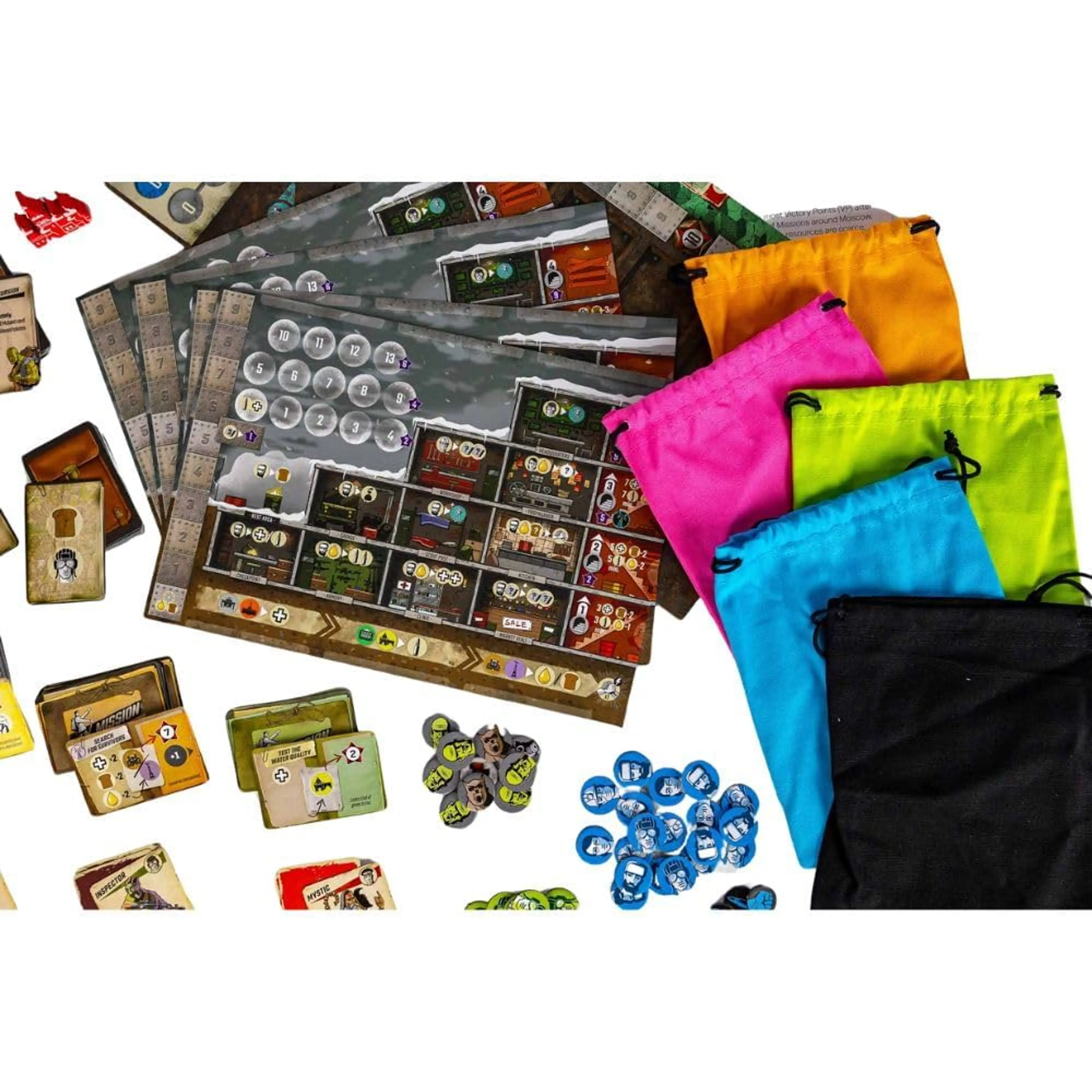 Igralci dodajajo nove preživele z edinstvenimi sposobnostmi v svojo vrečko, kar vpliva na razpoložljive akcije v prihodnjih krogih. Na začetku vsakega kroga igralci skrivno določijo, kam bodo poslali svoje delavce (Metro, Pristanišče ali Bazo), kar zahteva strateško načrtovanje. Igralci zbirajo in uporabljajo različne vire (gorivo, hrano, rezervne dele) za izpolnjevanje misij, reševanje preživelih in nadgradnjo svoje baze. Z nadgradnjami baze igralci odklepajo nove možnosti za postavljanje delavcev in povečujejo učinkovitost svojih akcij.