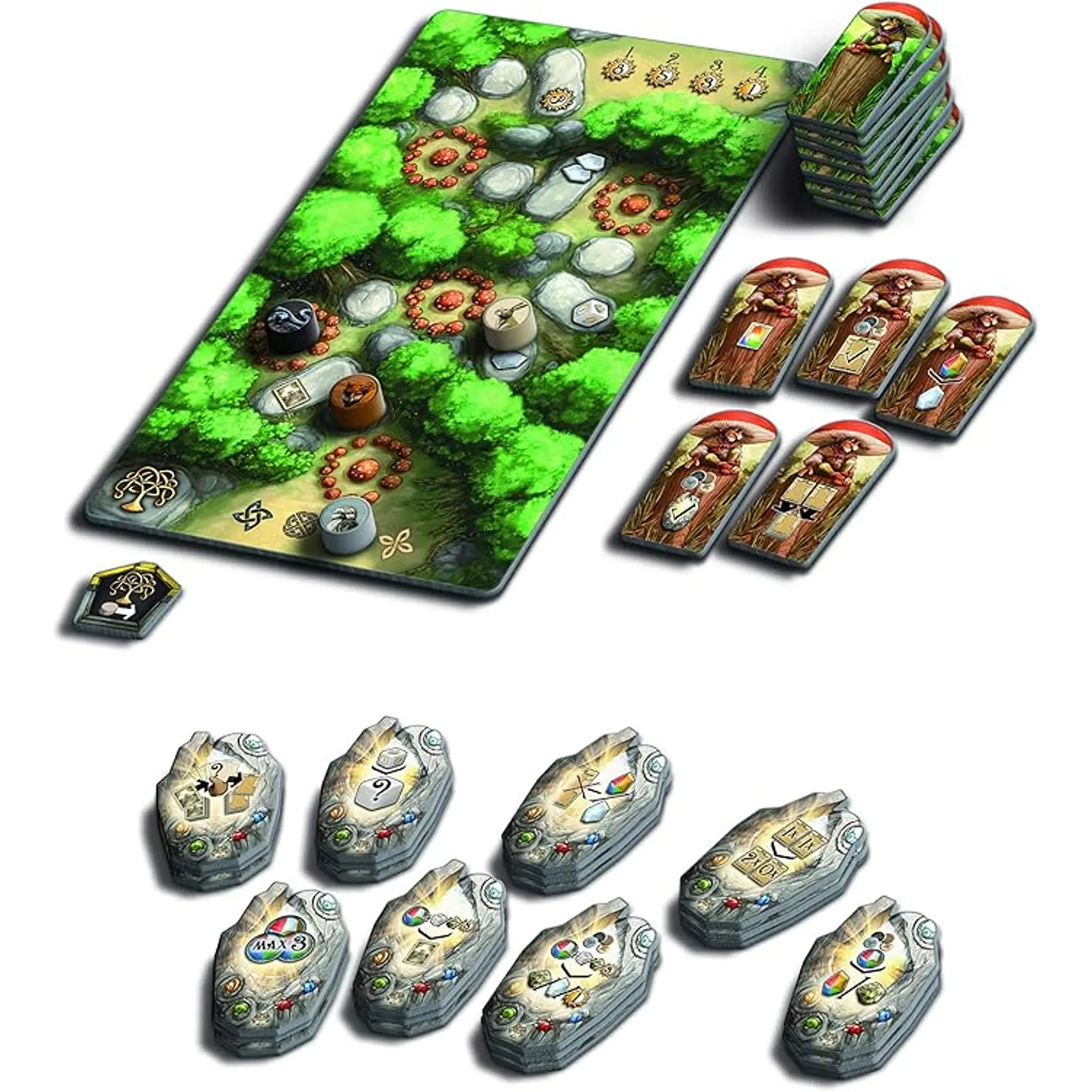 - Domače živali (Familiars): Igralci se lahko odpovejo akciji na karti, da premaknejo svojo domačo žival globlje v očarani gozd. S tem lahko zbirajo čarobne mušnice in pridobijo bonuse, ki jim pomagajo pri njihovem iskanju. Na koncu igre igralci prejmejo tudi točke glede na položaj svoje živali na poti skozi gozd.