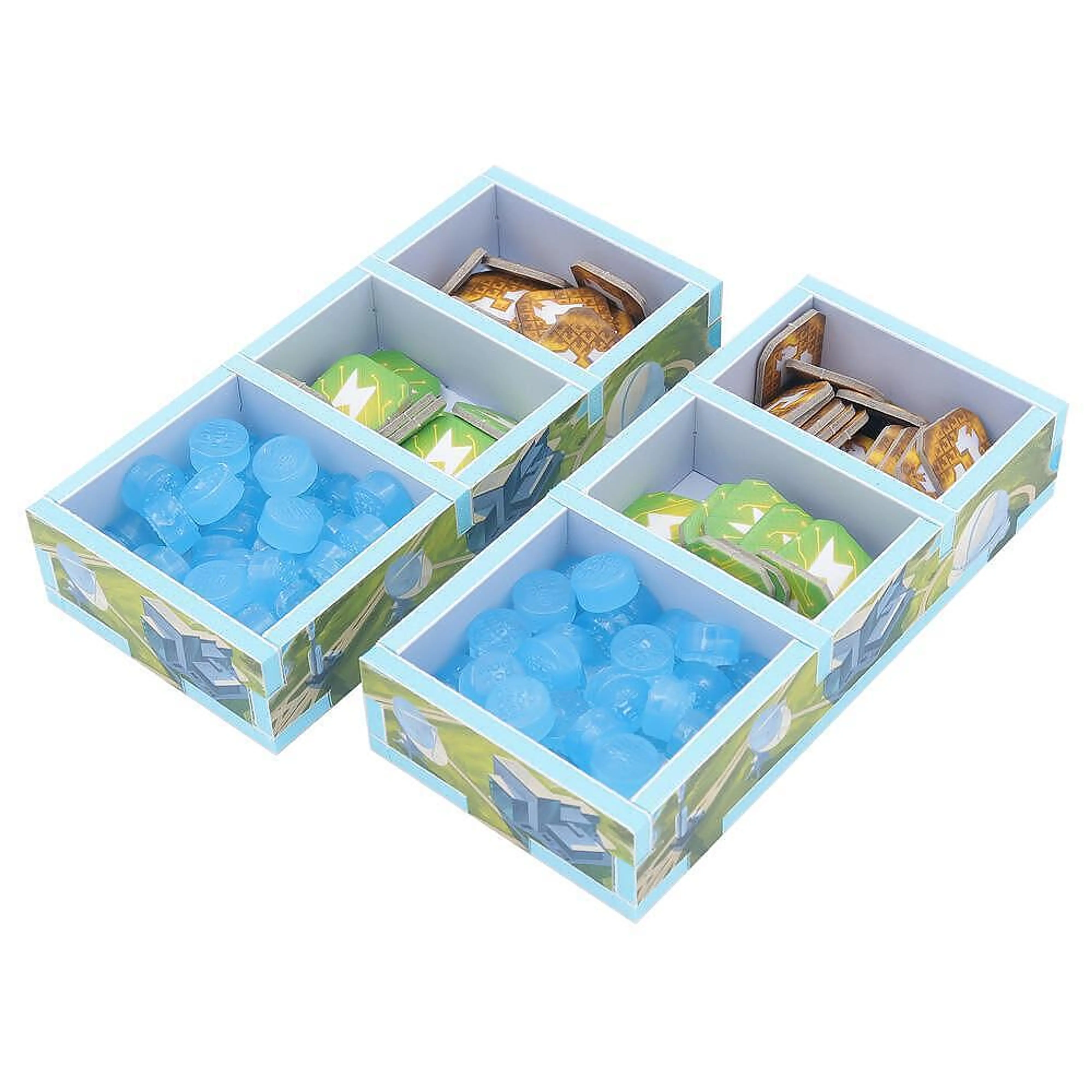 Polnobarvni tisk organizatorja vizualno oživi, ga poveže s tematiko igre in omogoča lažje prepoznavanje, kam sodijo posamezne komponente.