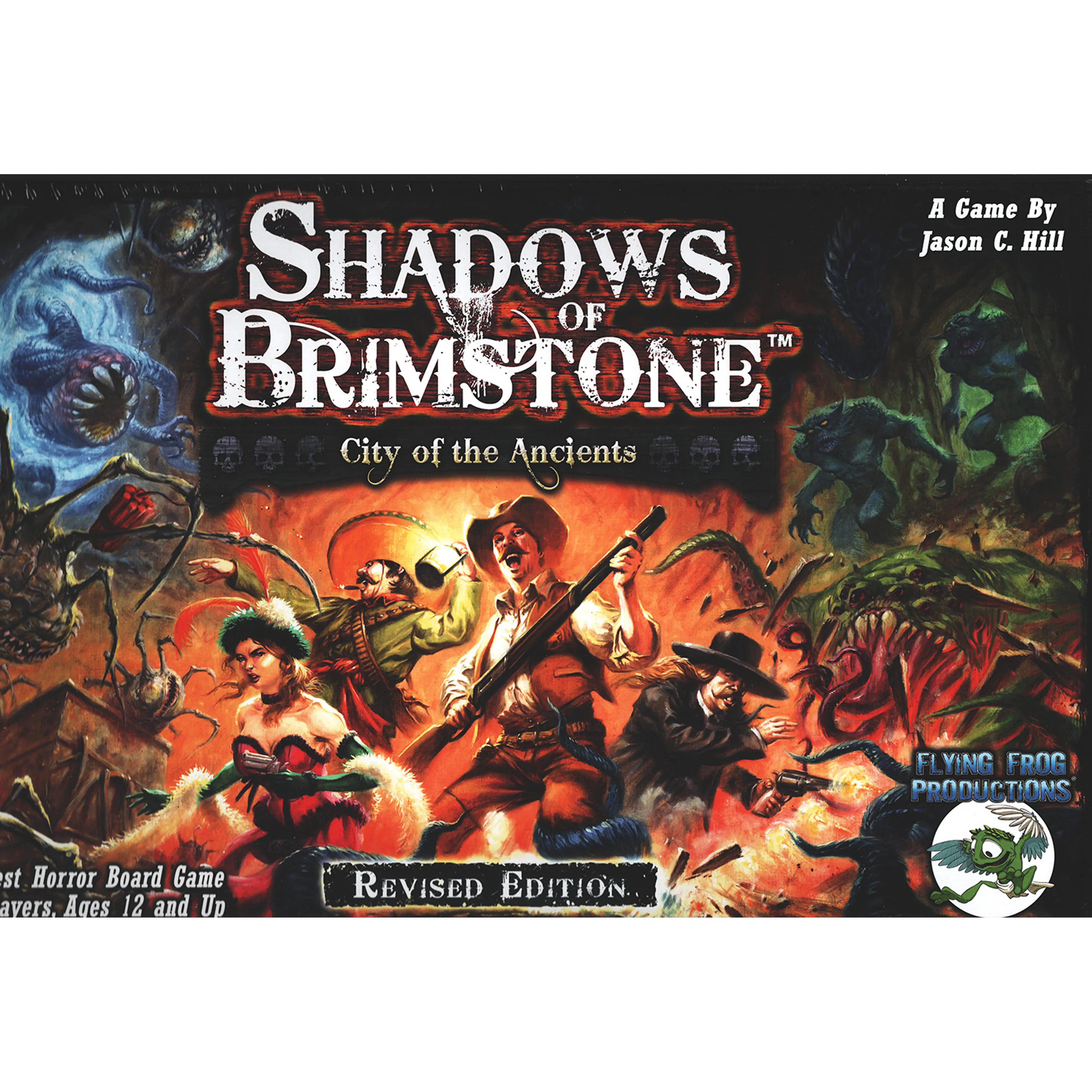 Shadows of Brimstone: City of the Ancients (Revised Edition) je tematsko bogata, kooperativna pustolovska družabna igra, ki združuje elemente divjega zahoda, grozljivke in fantazije. Gre za prenovljeno različico izvirne igre iz serije Shadows of Brimstone, ki igralce popelje v temačne rudnike in starodavna mesta, kjer se spopadajo z nadnaravnimi grožnjami iz drugih svetov.