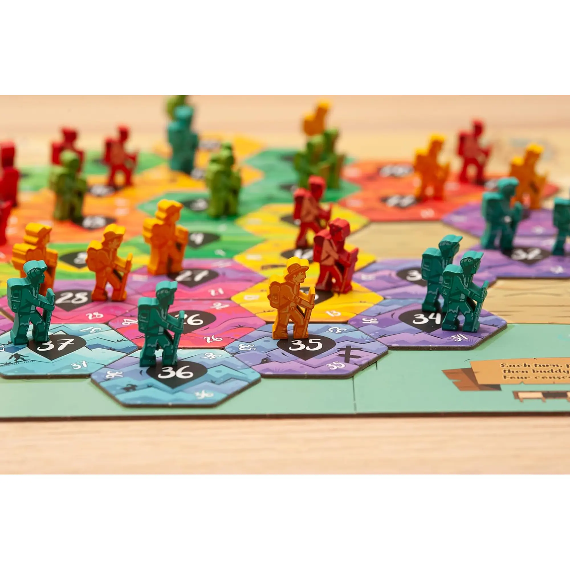 Pohodniki prinesejo točke le, če stojijo na zaporedju vsaj 4 številk, ki tvorijo neprekinjeno pot. Na začetku igre vsak igralec skrivnostno odstrani eno ploščico iz igre, kar ustvari zanimivo skrivalnico in blefiranje.