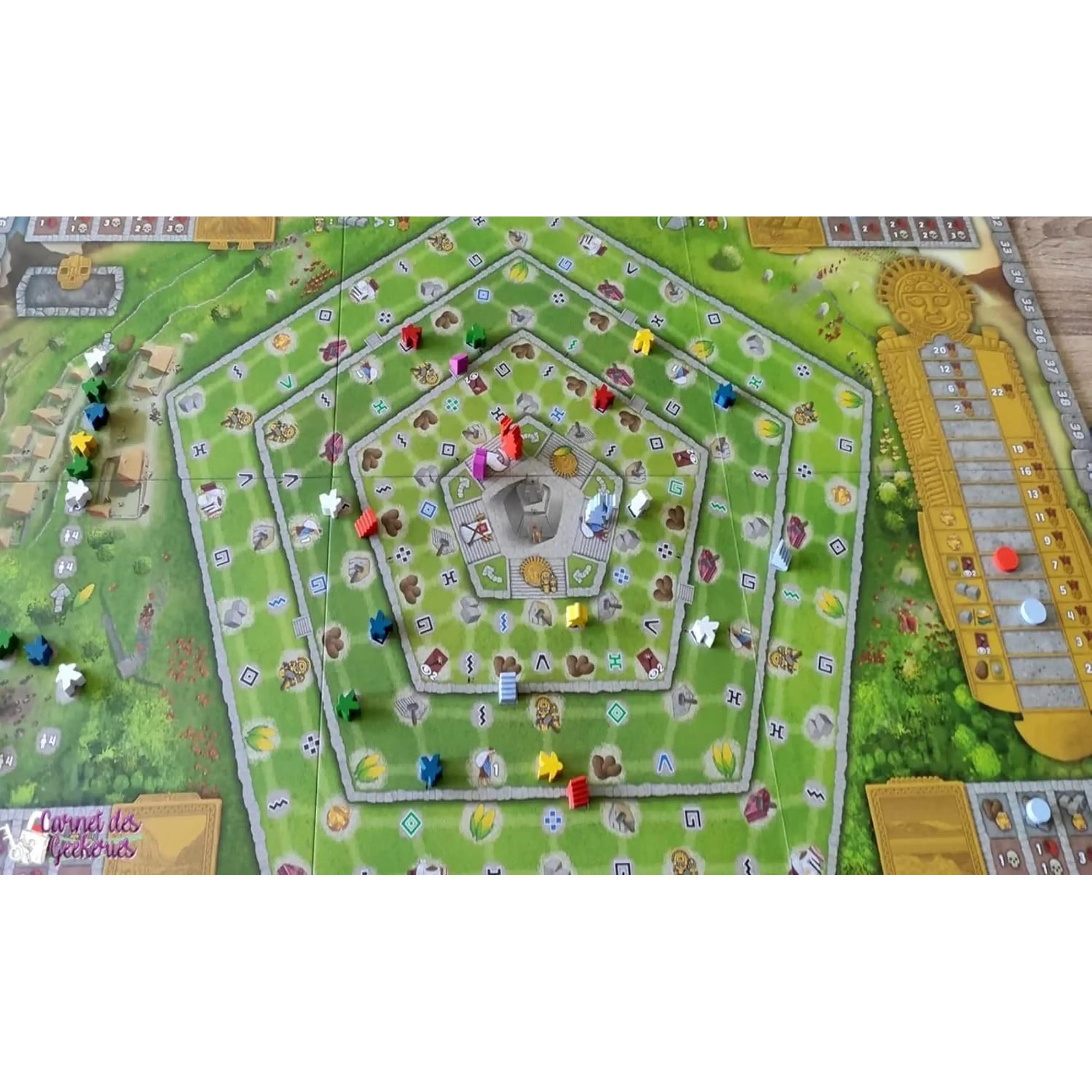 Igralci postavljajo delavce na terasast hrib, pri čemer morajo upoštevati stroške gibanja (hrana, zlato) in simbol bogov. Visoki duhovnik se premika po templju Coricancha in določa stroške ter možnosti postavitve. Vsak delavec ima posebne sposobnosti (bojevnik, arhitekt, obrtnik …), ki vplivajo na akcije. Igralci zbirajo karte bogov in vojske, ki omogočajo dodatne akcije in točke. Stopnice med terasami omogočajo lažje gibanje in prinašajo točke, še posebej, če jih uporabljajo drugi igralci. Igra je razdeljena na tri festivale, ki služijo kot vmesno točkovanje, s končnim točkovanjem po tretjem festivalu. Točke se pridobivajo z nadzorom regij, napredovanjem v templju, gradnjo, zbiranjem virov in pobožnostjo.