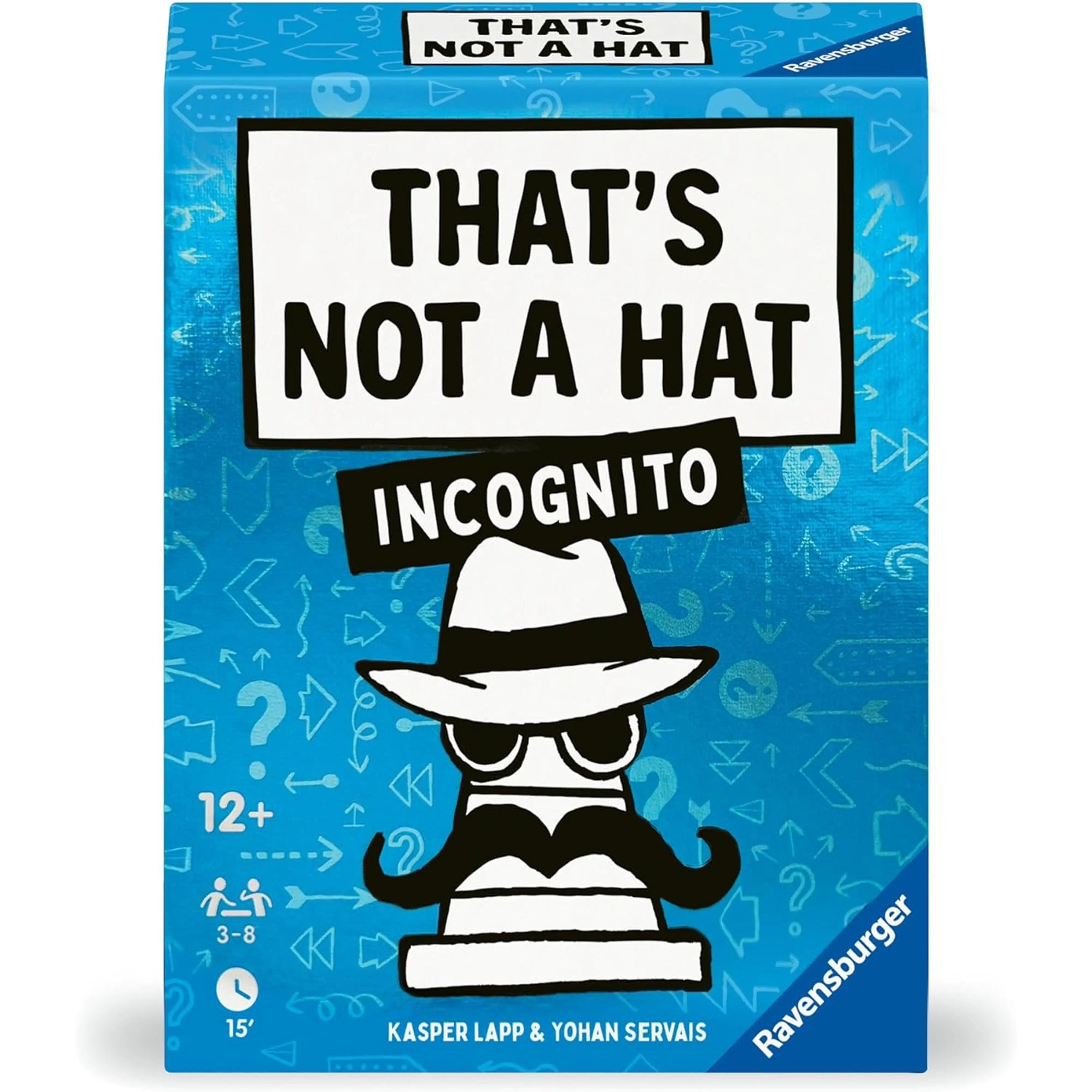 That's Not a Hat: Incognito je zabavna in dinamična družabna igra, ki preizkuša vaš spomin in sposobnosti blefiranja. Igralci si izmenjujejo kartice, ki predstavljajo namišljene like, in se trudijo ugotoviti, katera karta je dejansko pred njimi. Čeprav je igra preprosta, prinaša veliko smeha in zabave, saj se igralci pogosto znajdejo v zabavnih situacijah zaradi pozabljenih kart ali napačnih ugibanj.