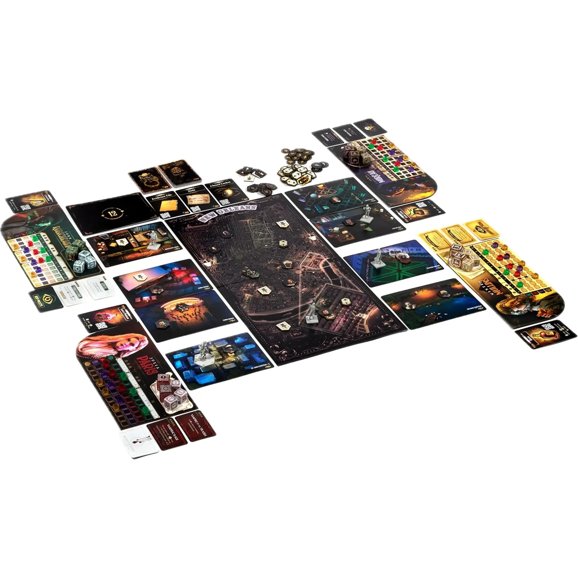 The Dark Quarter je tematsko izjemno bogata, kooperativna družabna igra, ki igralce popelje v mračno, nadnaravno različico New Orleansa v 80. letih. Gre za igro, ki združuje preiskovanje zločinov, osebne zgodbe, temno magijo in moralno dvoumne odločitve, vse skupaj pa je podprto z aplikacijo, ki vodi zgodbo in omogoča razvejano pripovedovanje.