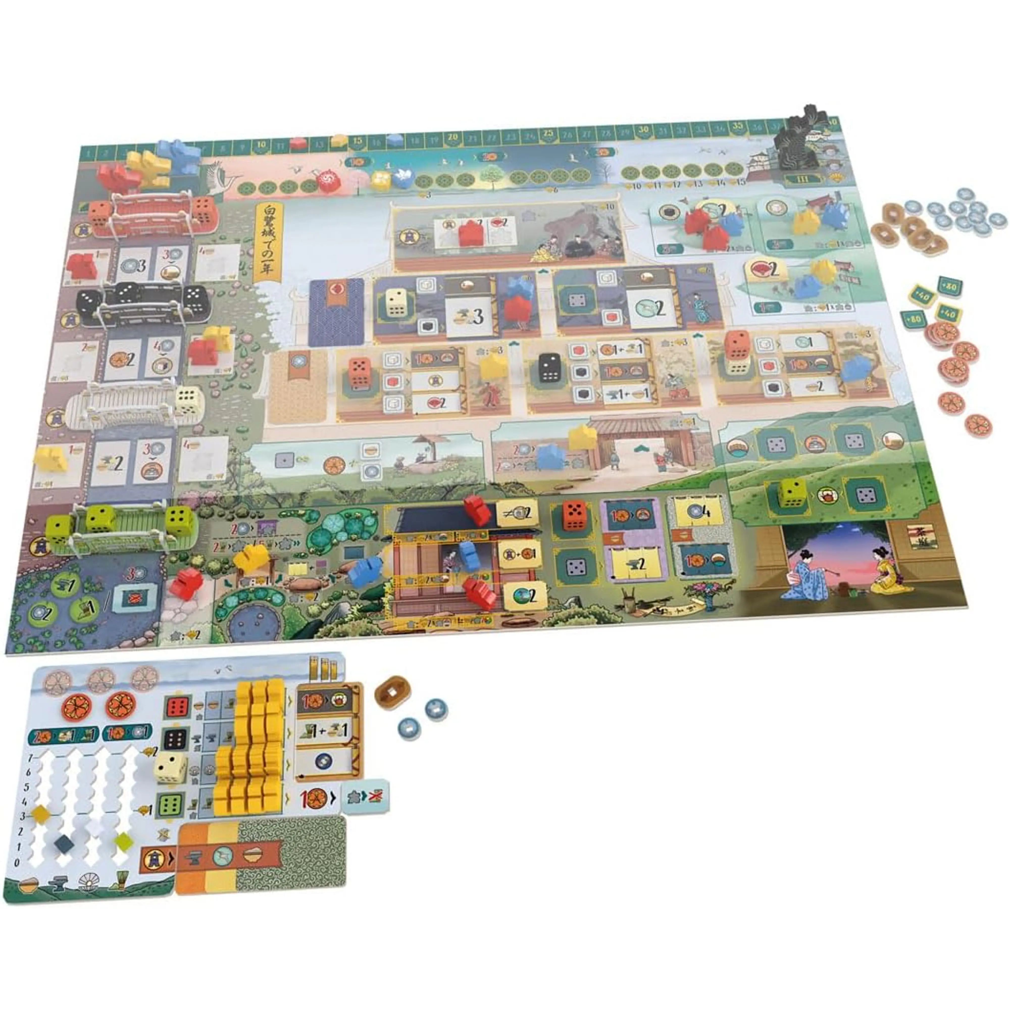 -Dodatne komponente: Razširitev vključuje zelene kocke, nove akcije, figure gejš kot nove člane klana ter nov vir, imenovan chasen, ki dodaja globino in raznolikost strategij v igri.