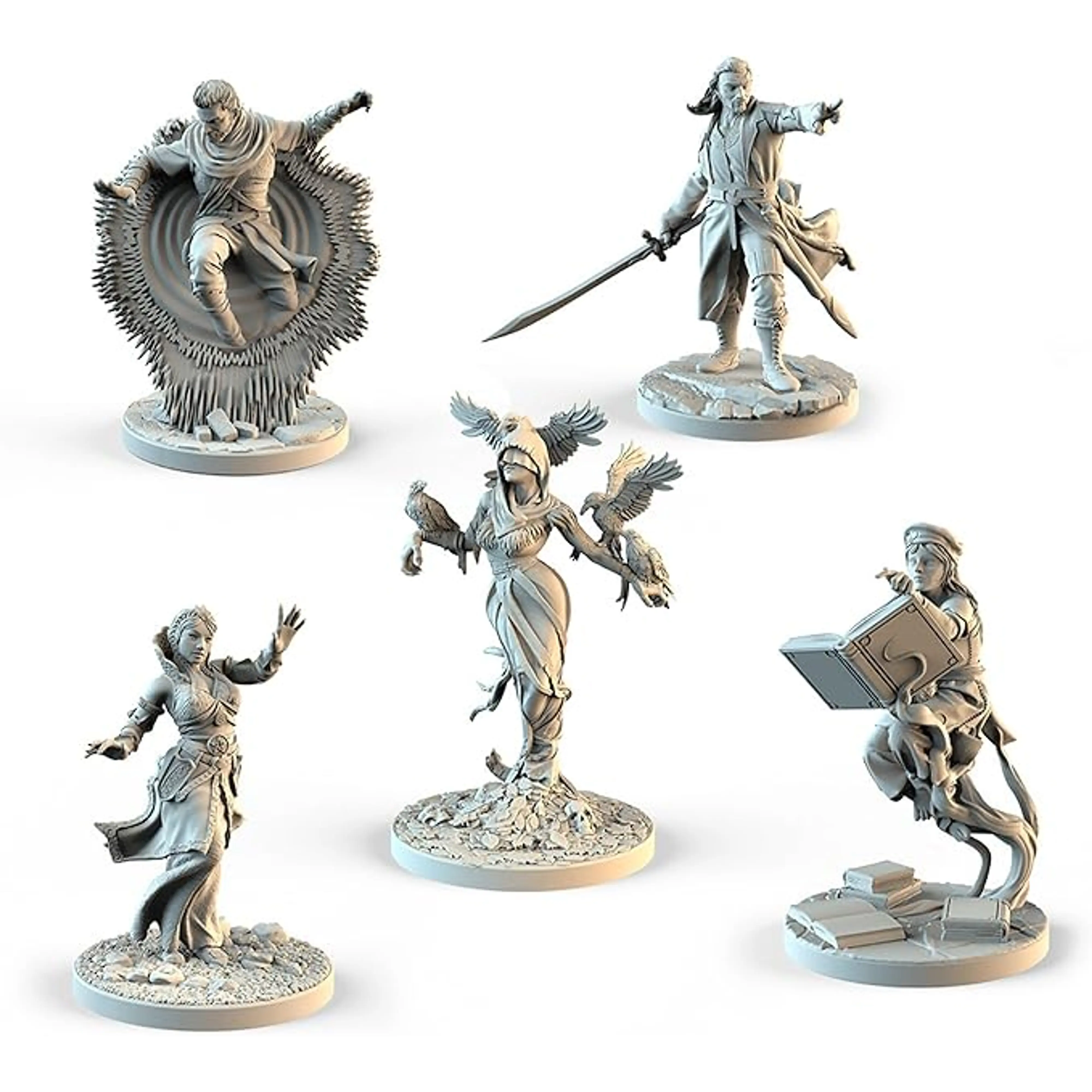 - 5 kompletov sestavnih delov za Maga: figurica s plastičnim podstavkom, dvoplastna igralčeva plošča, žetoni za sledenje atributom in energiji, 10 začetnih kart akcij in 4 kartice trofej.