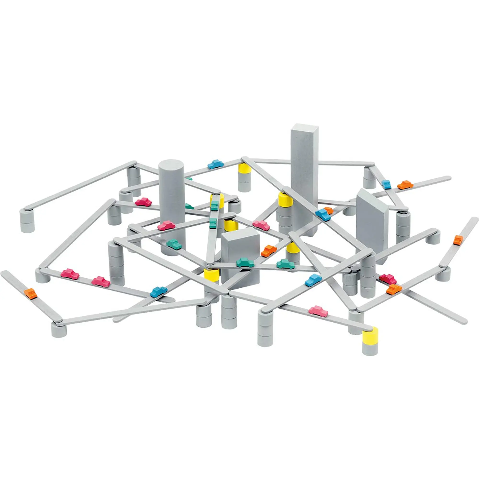 Mehanika igre je preprosta, a izzivalna. Vsak igralec dobi komplet barvnih cest in majhnih avtomobilov. Igralci postavljajo stebričke in nanje polagajo svoje ceste, pri čemer morajo paziti na višine in kote, da ne bi podrli lastne (ali nasprotnikove) strukture. Cilj je graditi tako, da z nadvozi prečkate ceste drugih igralcev, kar vam omogoča postavljanje svojih avtomobilov – in s tem nabiranje točk. A pazljivo! Če se konstrukcija zruši, izgubite dragocene avtomobile, kar vas lahko stane zmage.