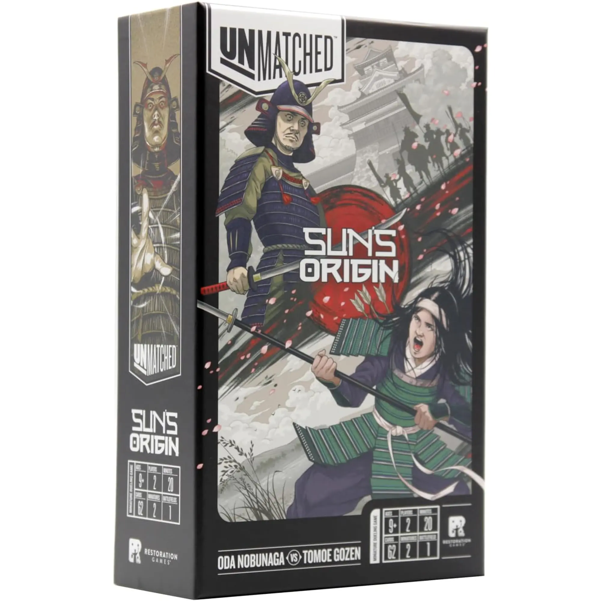 Unmatched: Sun's Origin je del priljubljene serije Unmatched, ki igralce popelje v boj med legendarnima japonskima zgodovinskima osebnostma – Tomoe Gozen in Oda Nobunago. Gre za dvobojno igro z edinstvenimi kartami, figurami in taktičnim premikanjem po bojnem polju.