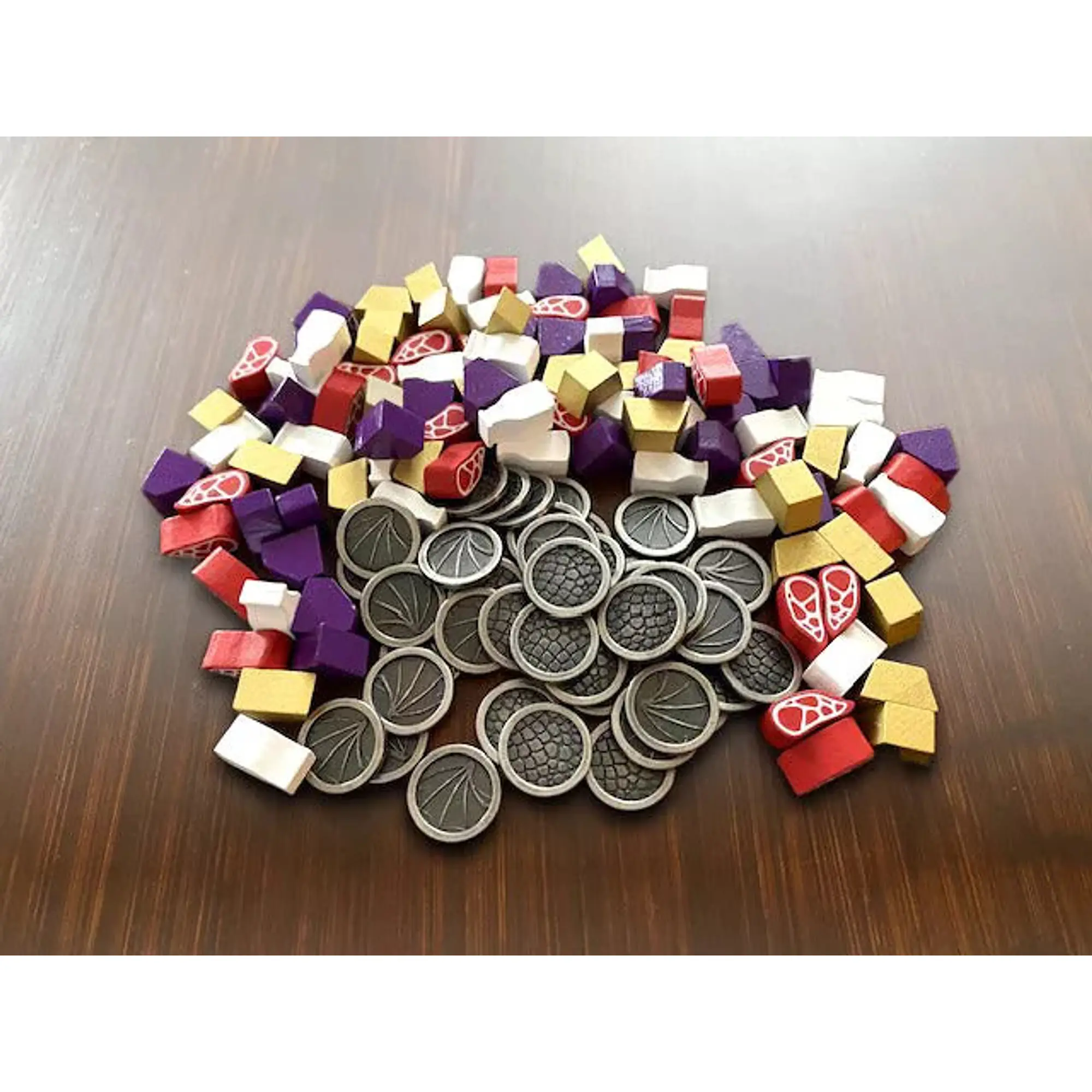 -104 lesenih žetonov virov (meso, dragulj, zlato in mleko)