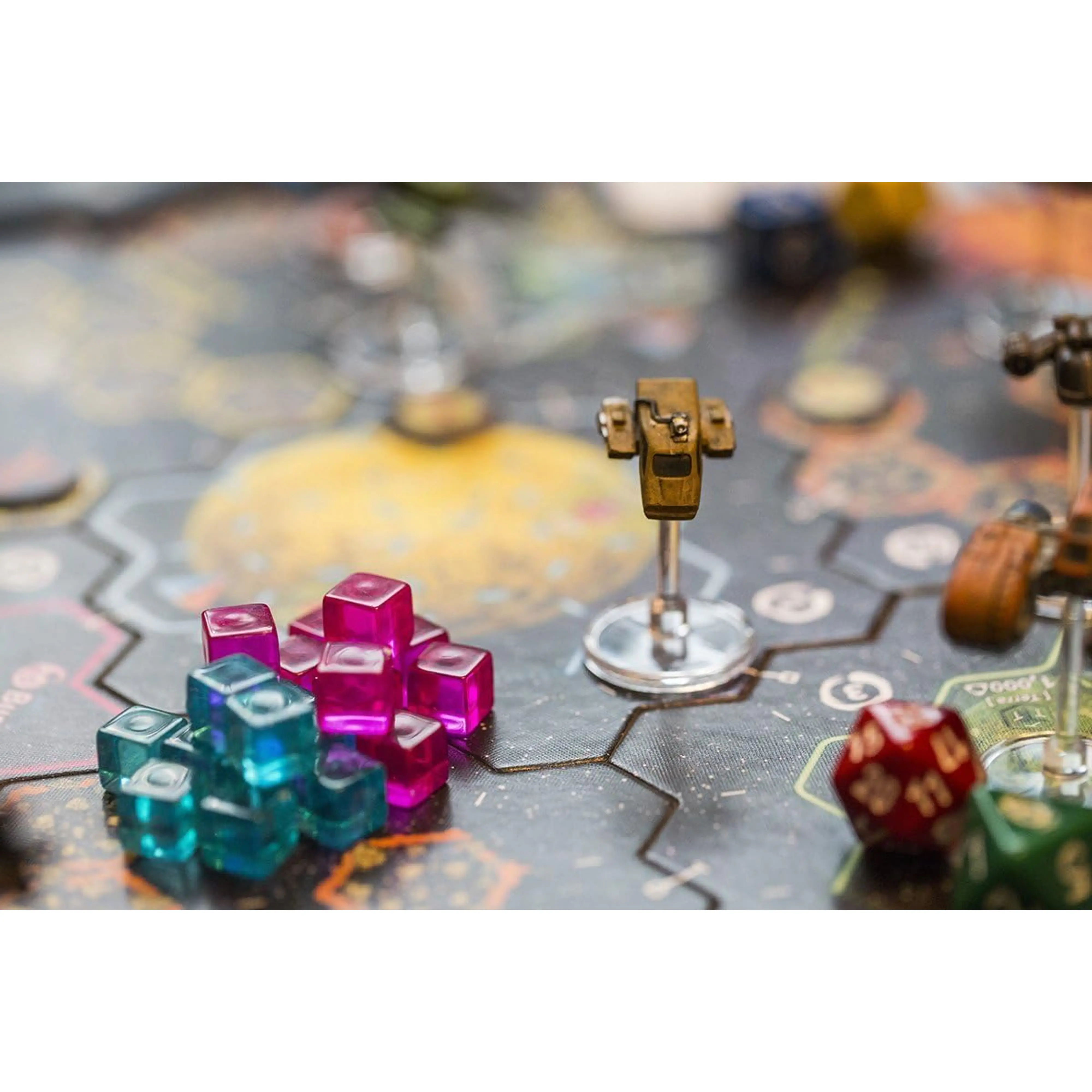 - Igralna plošča je sestavljena iz heksagonalnih ploščic, ki predstavljajo sektorje vesolja, in je vsakič drugačna, kar zagotavlja neskončno ponovljivost.