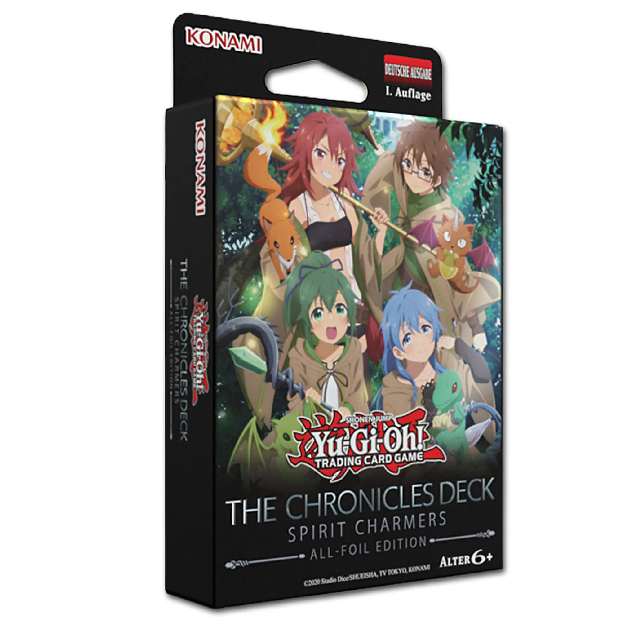 THE CHRONICLES DECK: Spirit Charmers (All-Foil Edition) je popolnoma folirana (all-foil) strukturna pošastna zbirka z 51 kartami, ki temelji na tematski mini-anime seriji THE CHRONICLES, v kateri vsak mesec izhaja kratka epizoda o pošastih in njihovih svetovih.