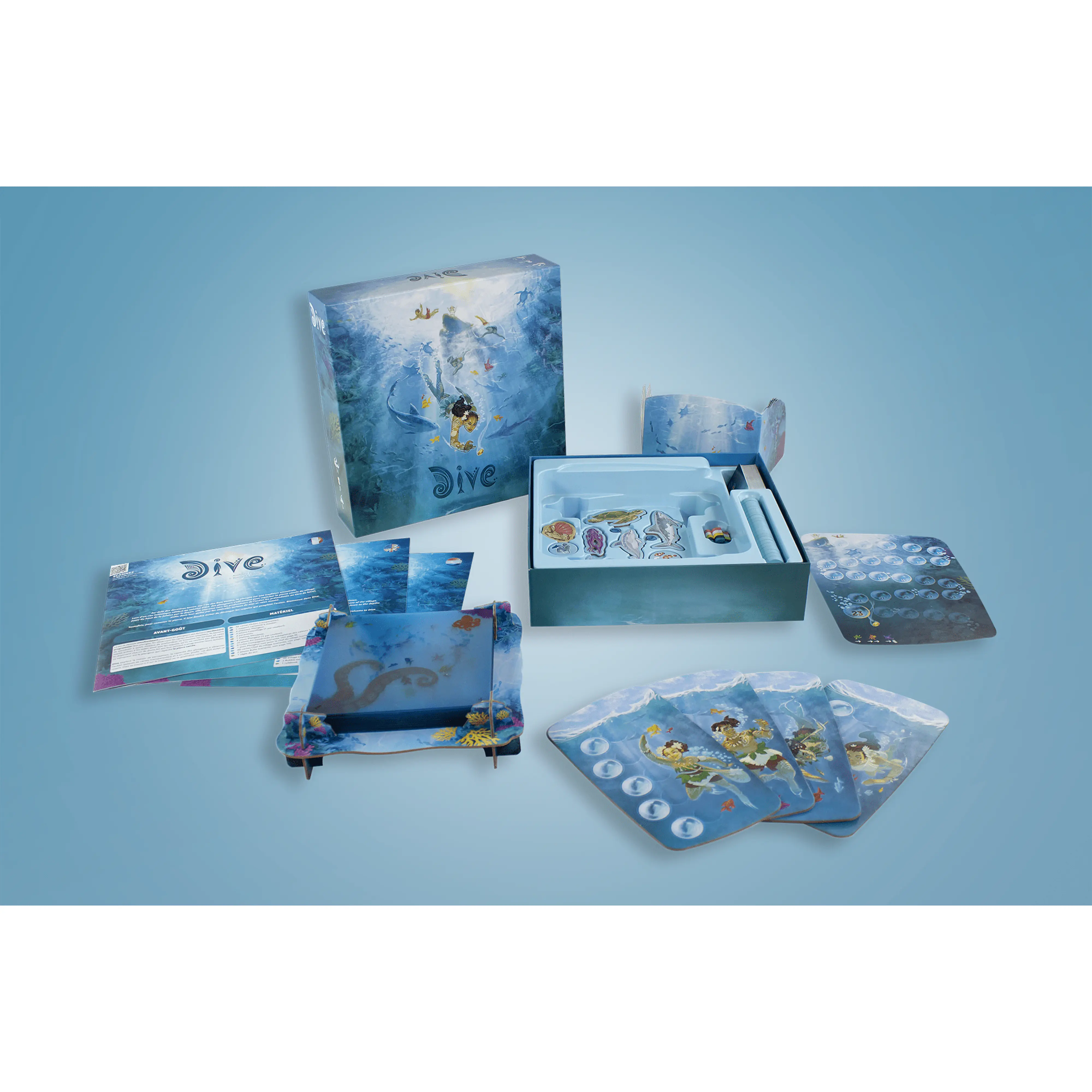 Dive je družabna igra za 1 do 4 igralce, ki vas popelje v čudovit podvodni svet, kjer tekmujete za pridobitev svetega kamna vasi. Igra združuje edinstveno mehaniko pregledovanja prosojnih kart, strateško načrtovanje in elemente tveganja, kar ustvarja edinstveno igralno izkušnjo.