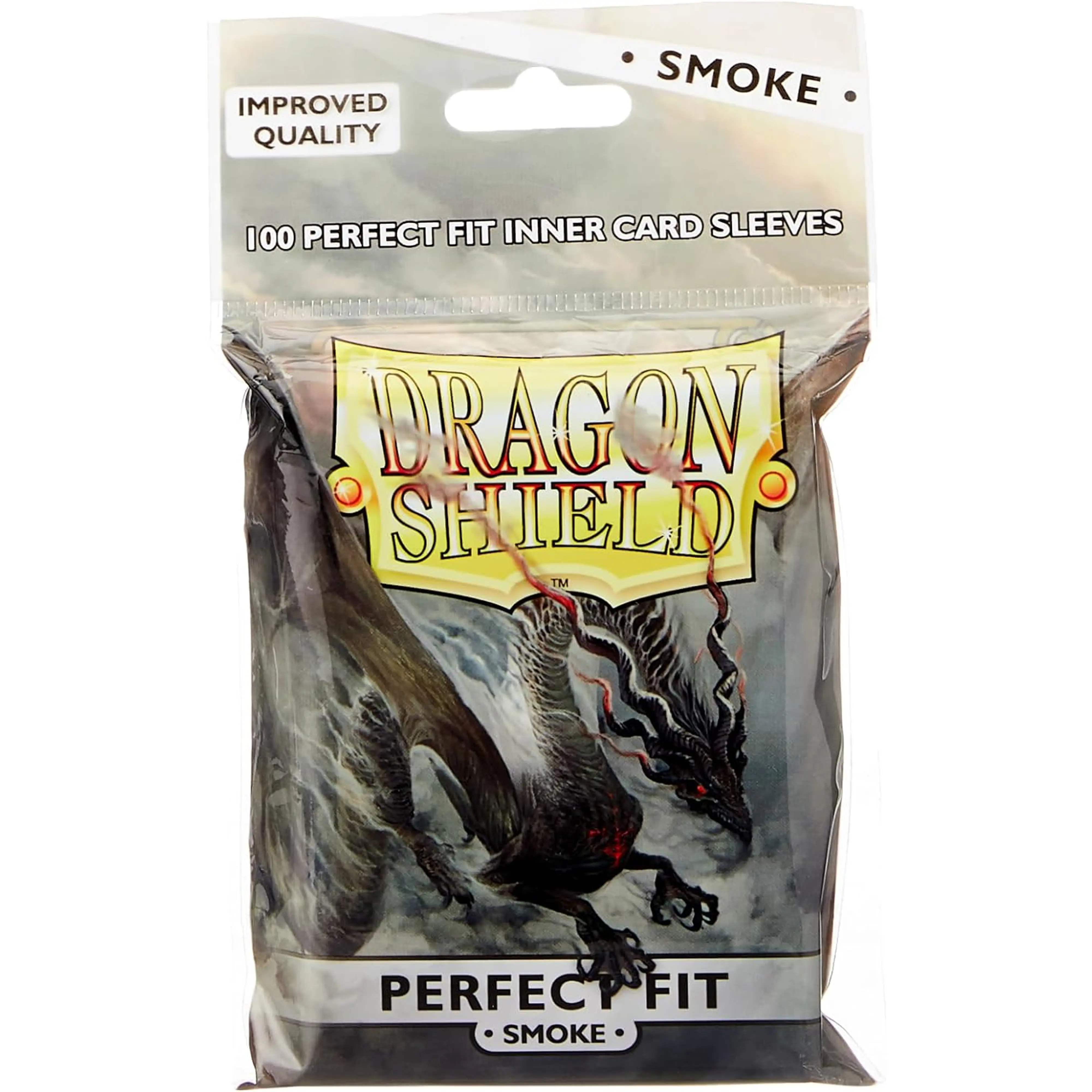 Prosojna sprednja stran in zadnja stran v barvi dima. Polprosojna barva zakrije podrobnosti na hrbtni strani karte, hkrati pa ohranja popolno berljivost. Perfect Fit ovitki nudijo izboljšano zaščito kart. Ti notranji ovitki se tesno prilegajo kartam in se prilegajo v vse standardne ovitke Dragon Shield.