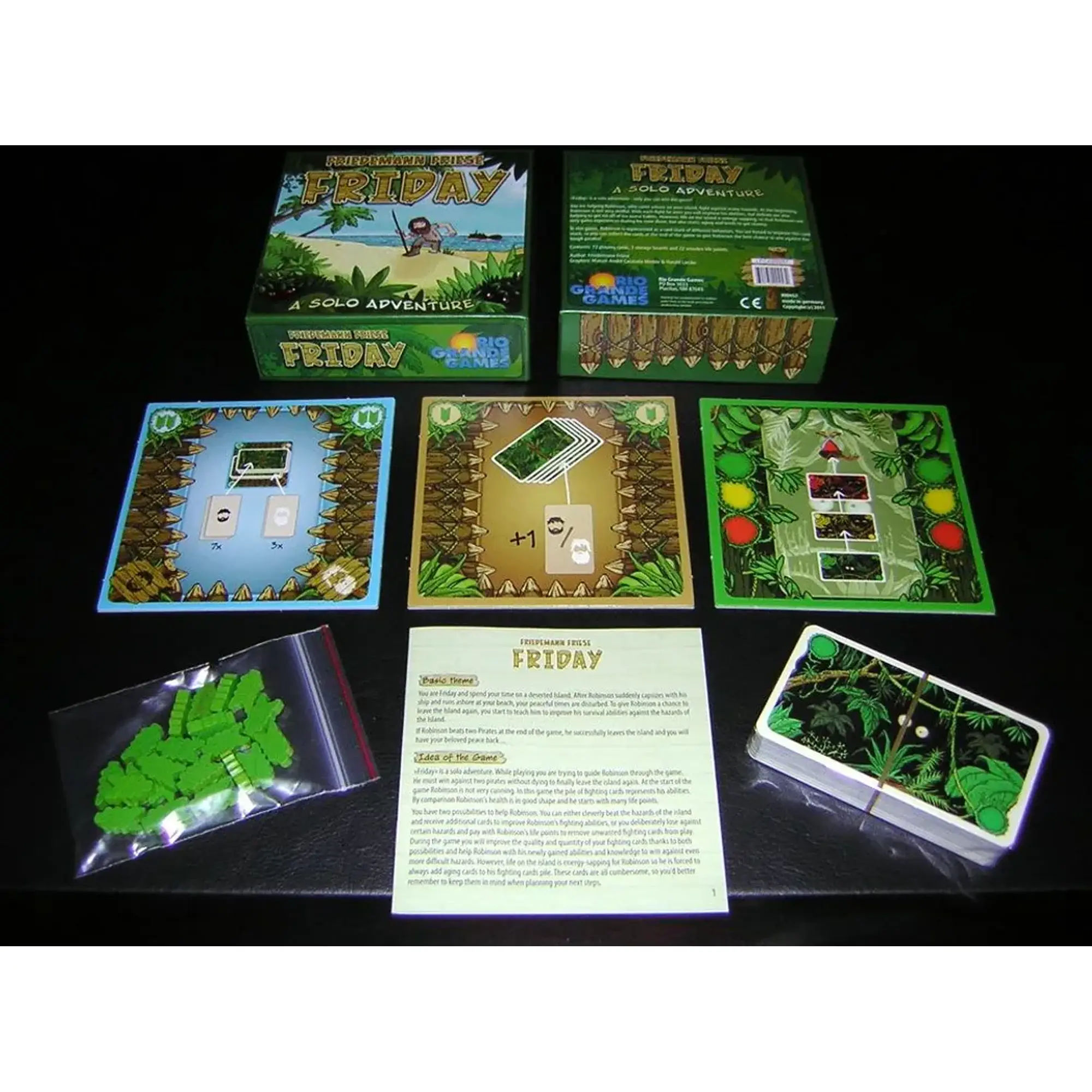 Če iščeš igro, ki združuje tematsko pripoved, strateško gradnjo kart in izključno solo igranje, je Friday odlična izbira za samotne igralne večere. 🏝️🃏🧔♂️