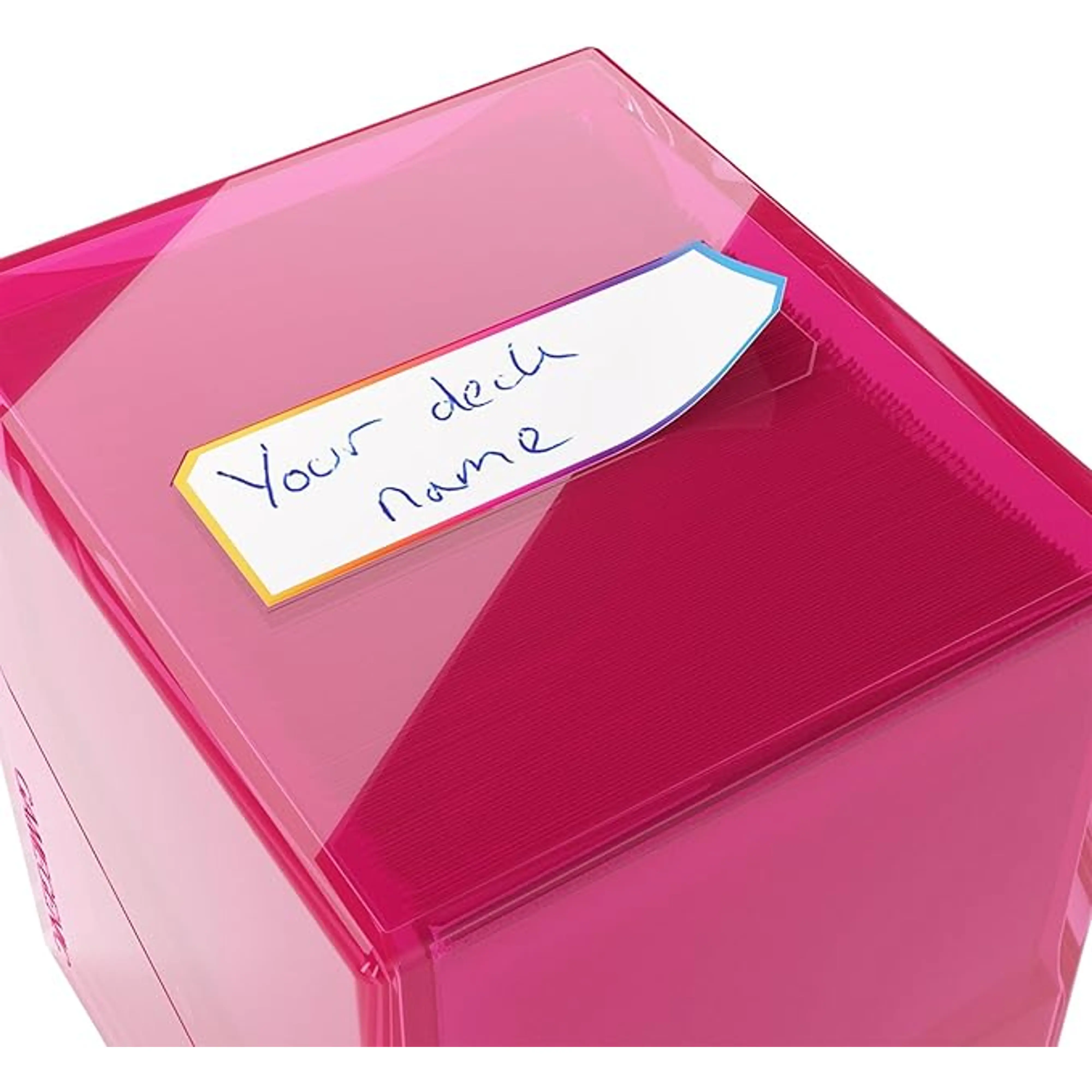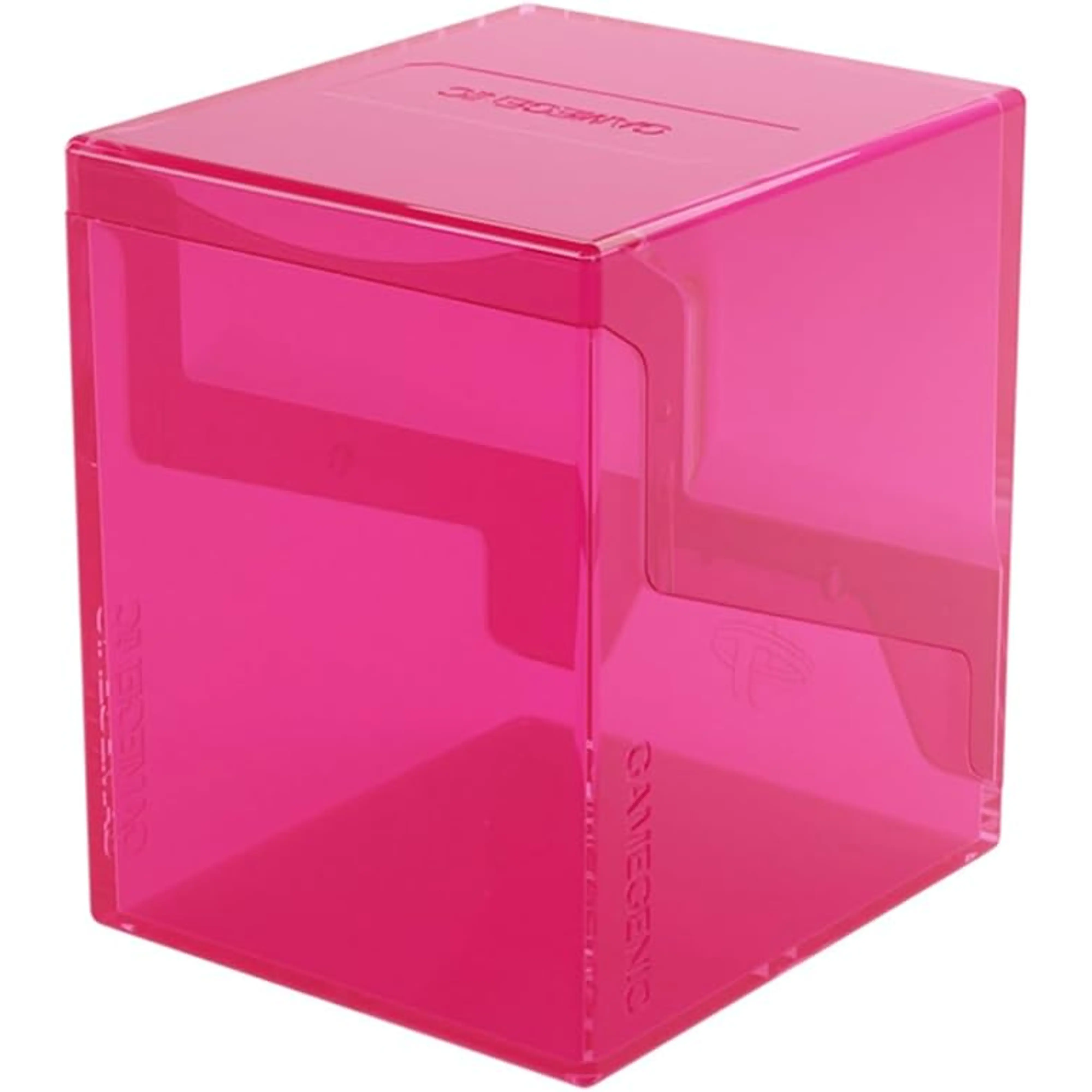 Bastion 100+ XL je izjemno kompaktna in trdna škatla za karte, zasnovana za varno shranjevanje več kot 100 dvojno ovitih kart v debelih notranjih ovitkih (Thick Inner Sleeves). Zaradi prosojnih materialov in pametne postavitve zapiralnih zavihkov je zgornja ali poveljniška karta (Commander) popolnoma vidna od zunaj, brez potrebe po odpiranju škatle.