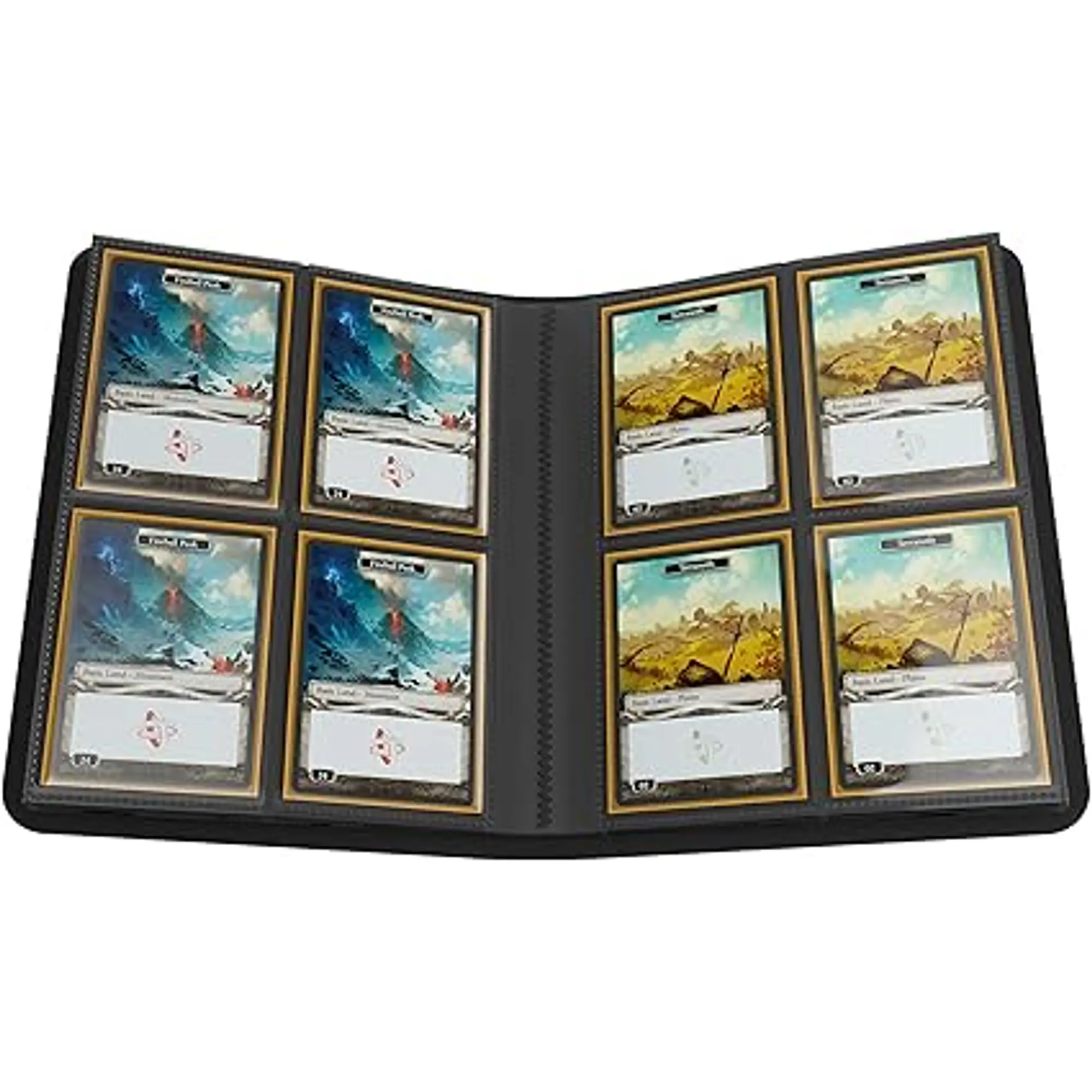 8 stranskih žepkov na stran, ki varno držijo karte na mestu